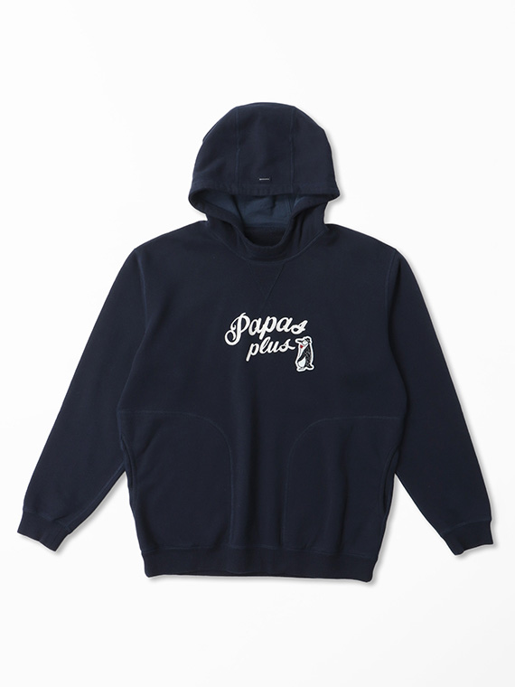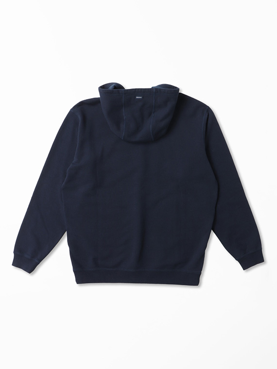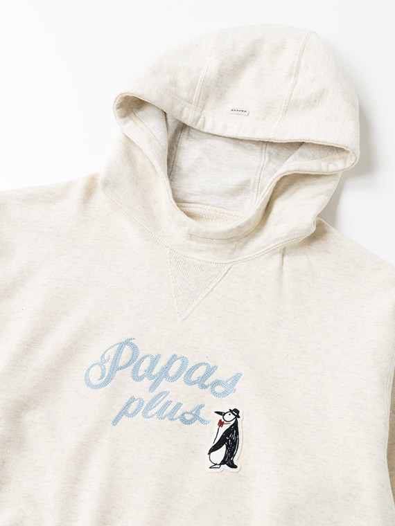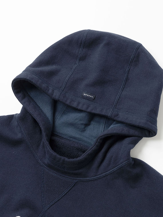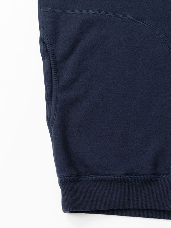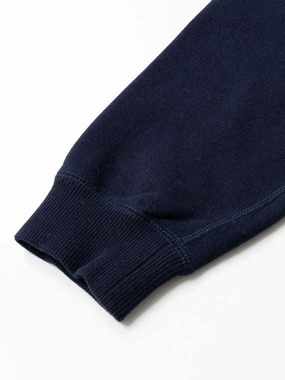 30/-X30/-X10/-の糸を使用し18ゲージの編み機で編んだ、やや度詰の裏毛素材です。コーミング(繊維を削って伸ばす工程が施された糸)をしっかり施した裏糸を使用しループを、2飛びにすることで、ボリュームのある柔らかい風合いを実現しています。トレーナーやパーカー等様々なアイテムに対応出来る素材に仕上がっています。