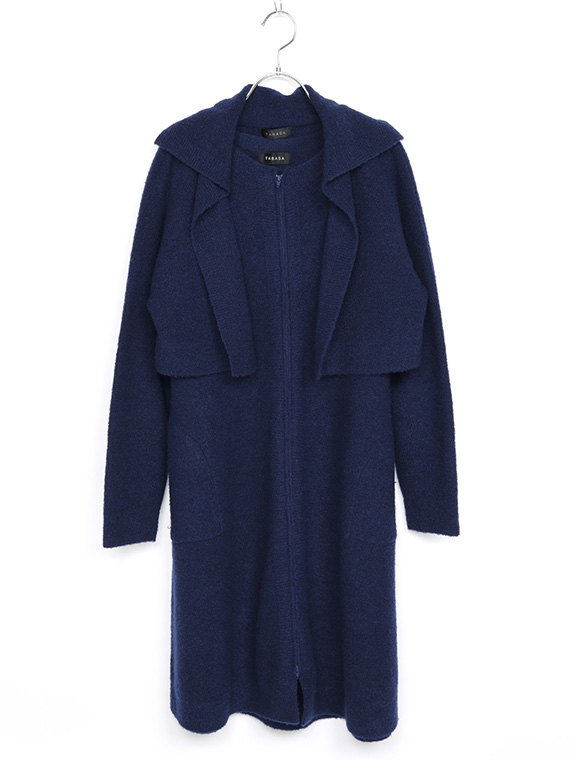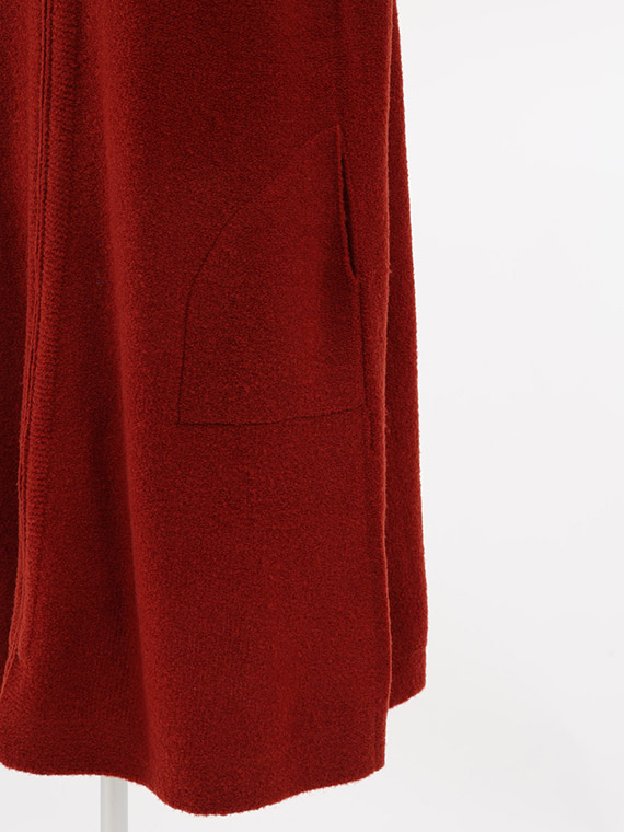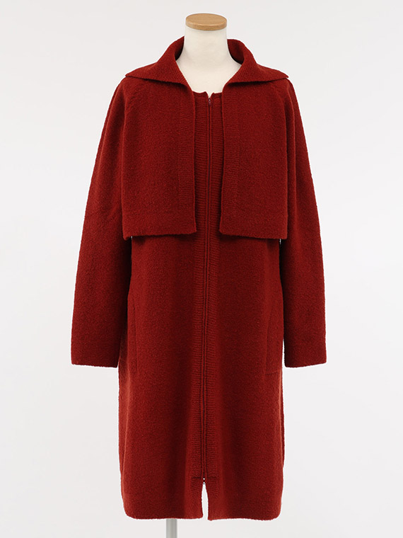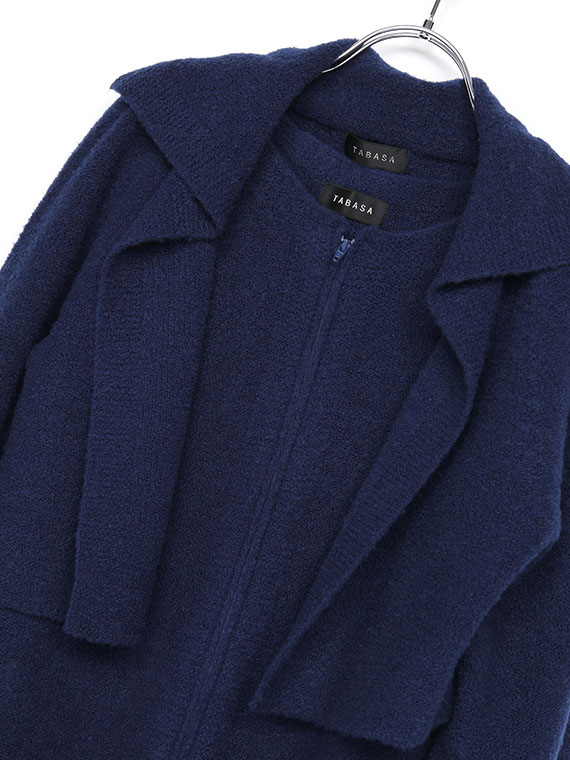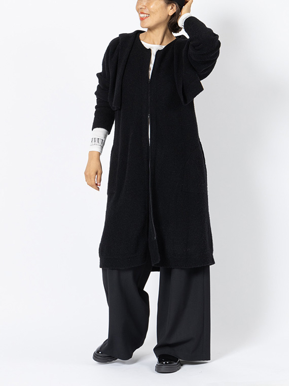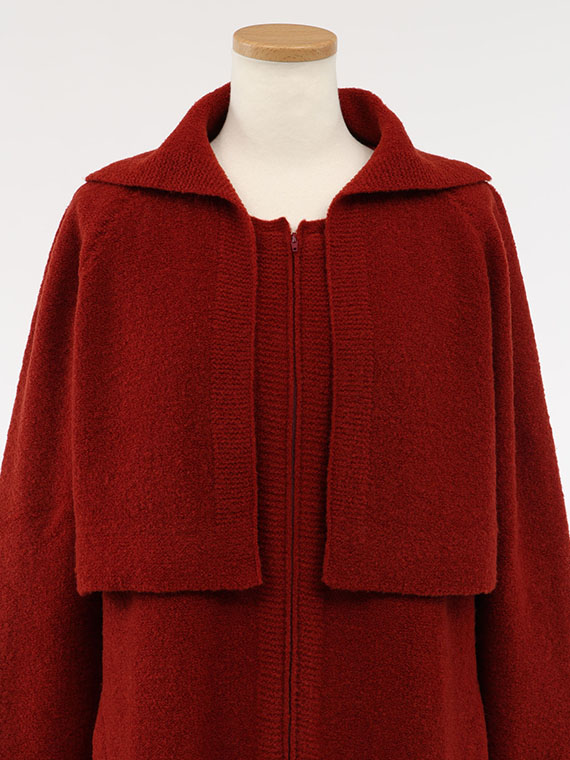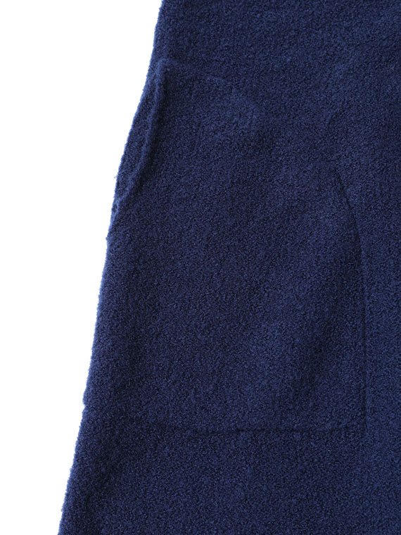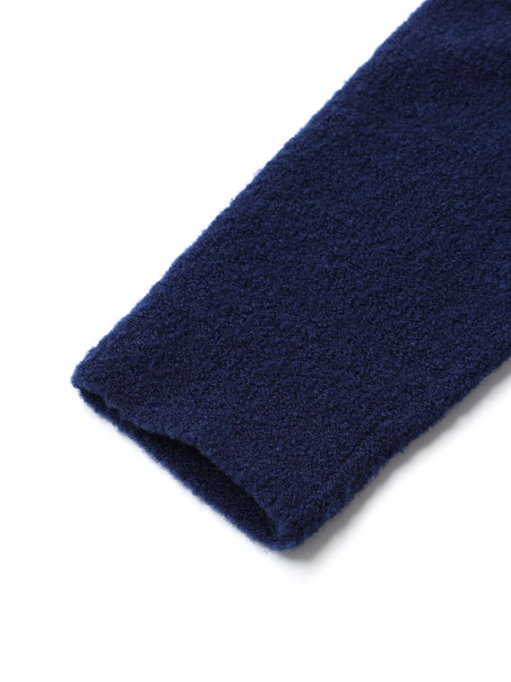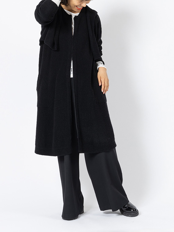 編むことで表面に糸の輪っかが出てモコモコとした肌ざわりや見た目になり、フェミニンで暖かな印象がある素材です。