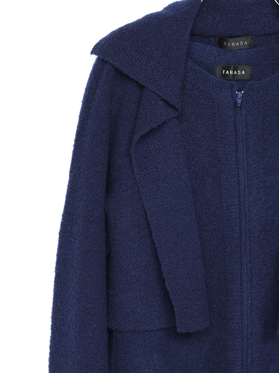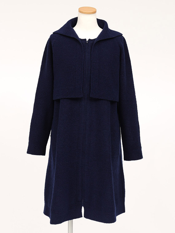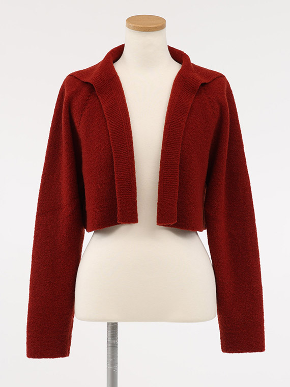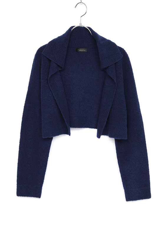 セーラーカラーのついたジャケットはボレロのようにコンパクトな仕上がりで、前に留め具のないサッと羽織るタイプのものです。