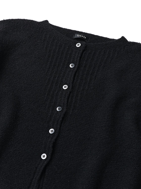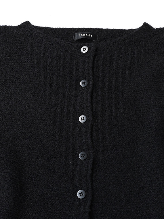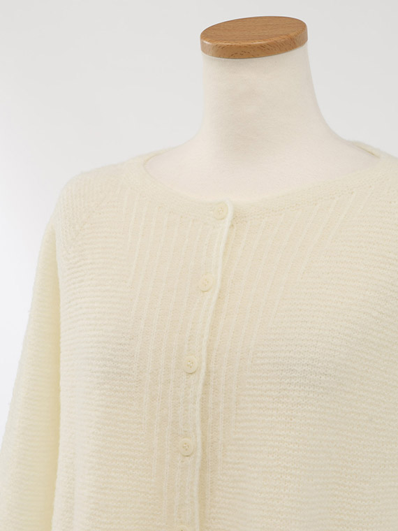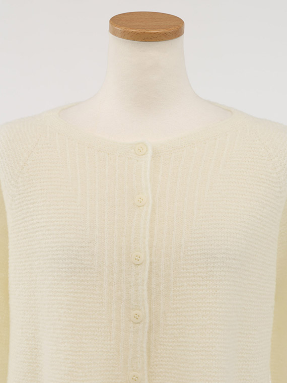 前身頃胸元にV字の地柄が入ったカーディガンです。