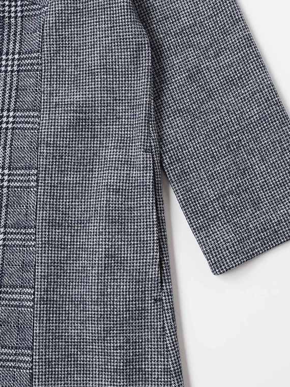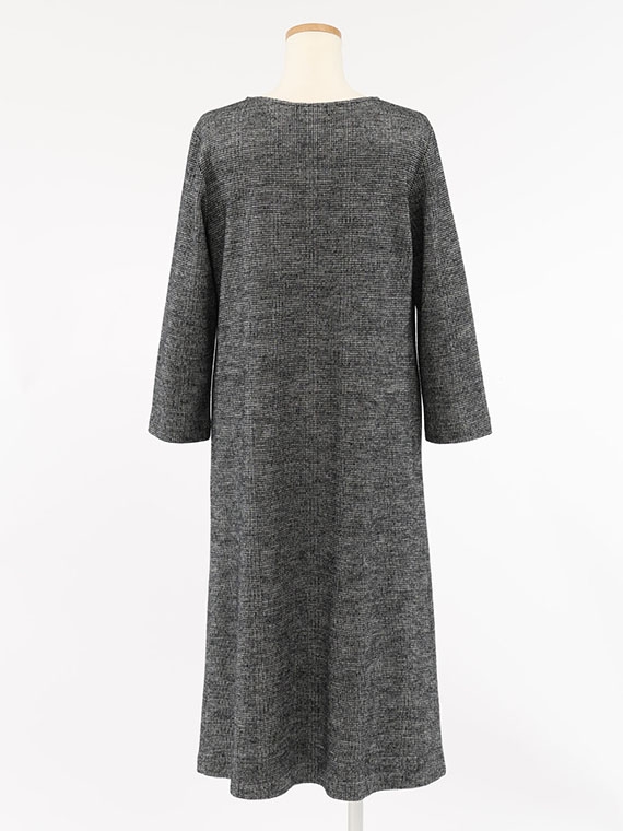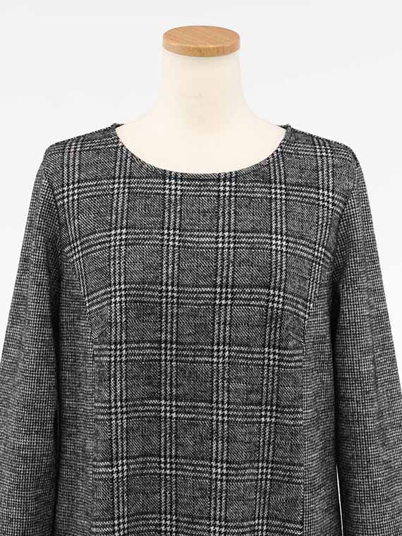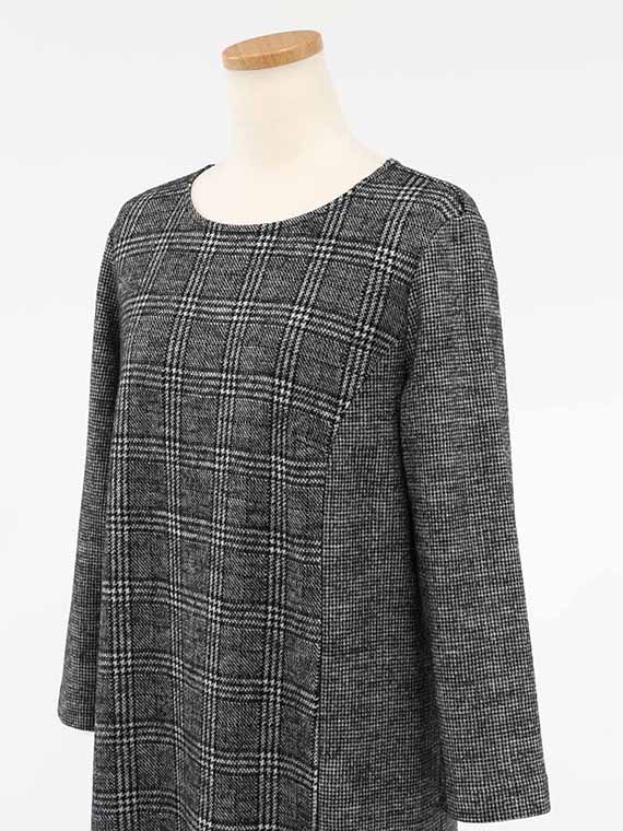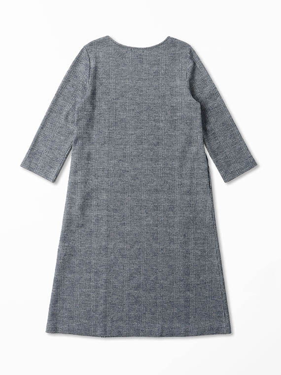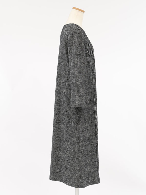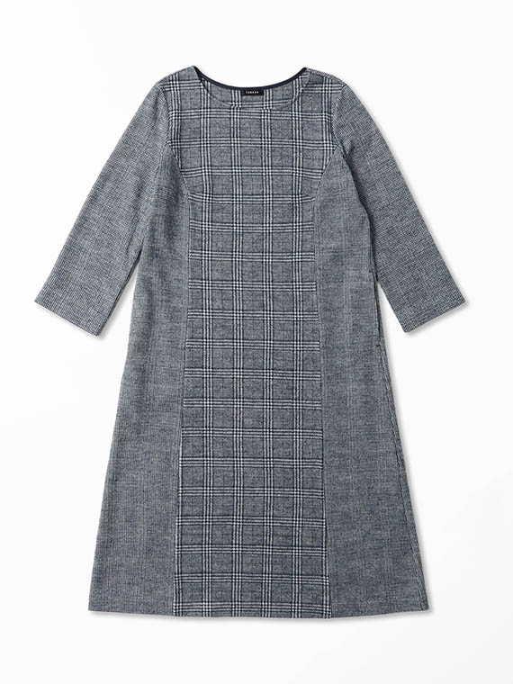 前身頃の中心部分をグレンチェックのパネル切替にして、それ以外はガンクラブチェックで仕立てたロングワンピースです。