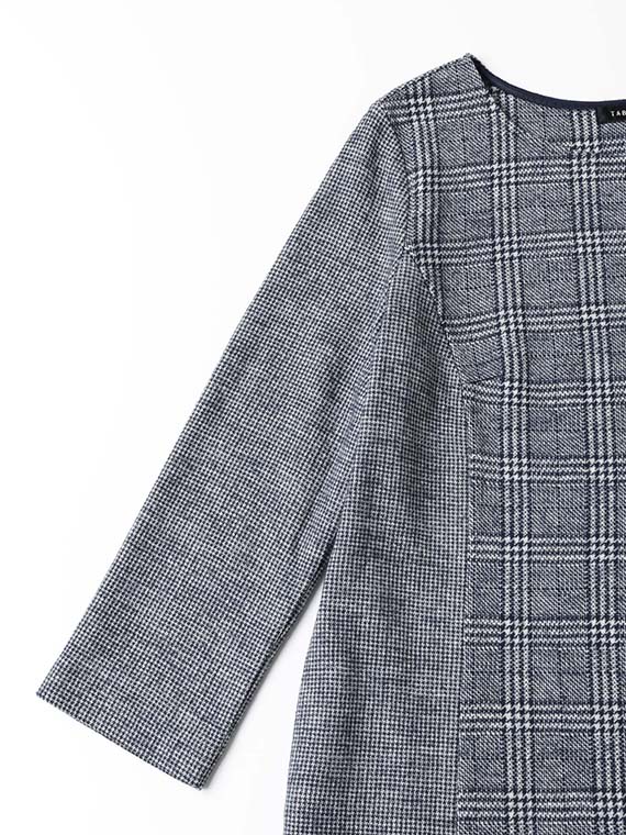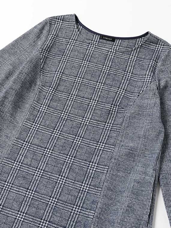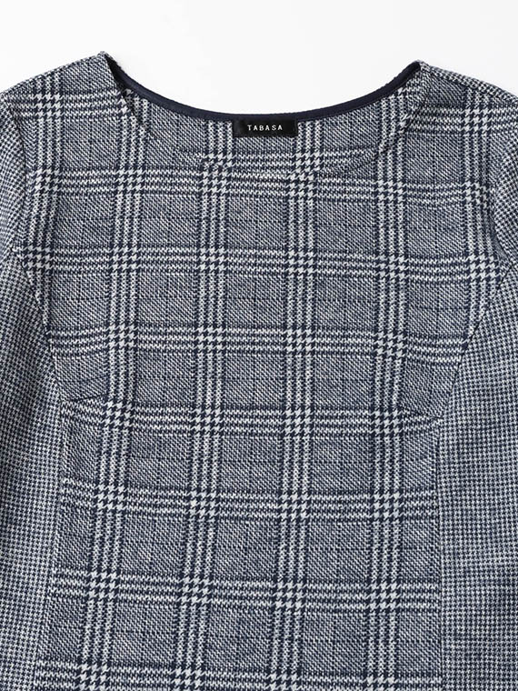 表面はグレンチェック、裏面はガンクラブチェック、と異なる柄で編みあげたタバサオリジナルのジャガード素材です。