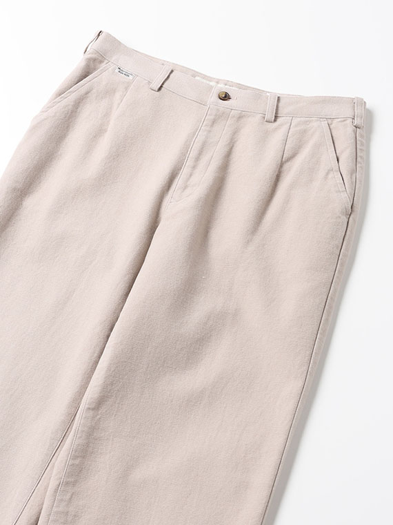 タテ糸に16/1綿セミコーマ、ヨコ糸には16/1セミコーマと40/1CSYを使用したストレッチリクラインド(変わり織りドビークロス)素材です。