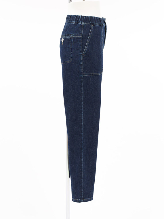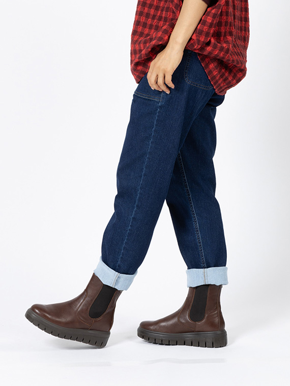 裏に起毛をかけたやさしい肌ざわりと暖かさのあるストレッチデニム生地です。