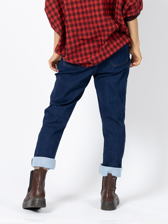 後ろ姿もバックヨークとセットインポケットがアクセントとなり、カジュアルな雰囲気を演出します。