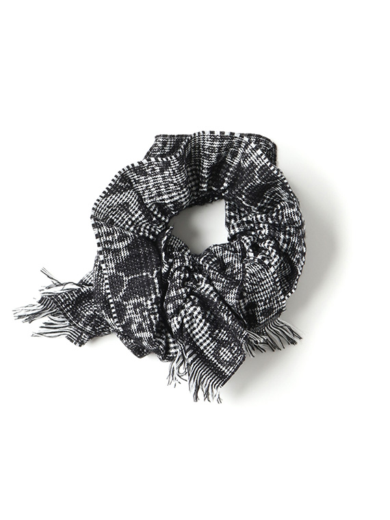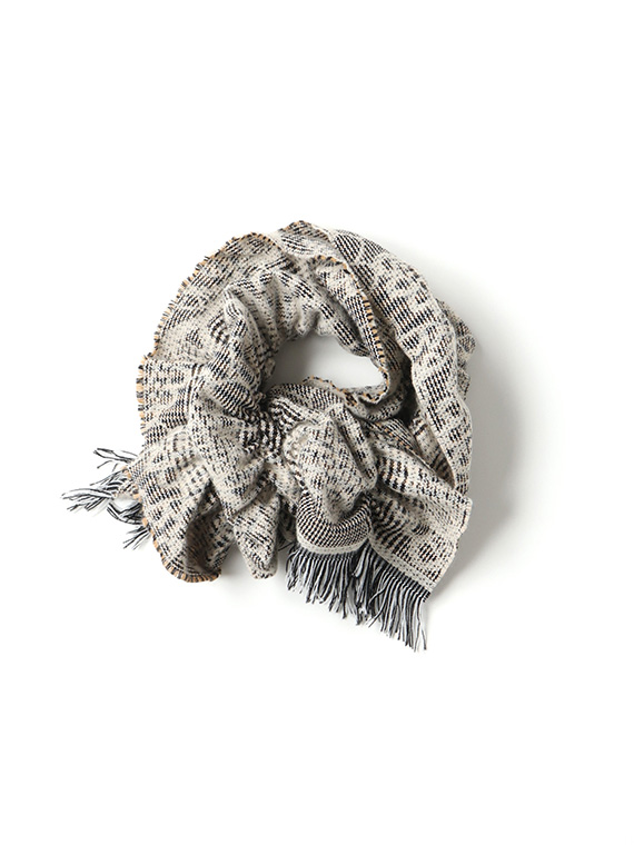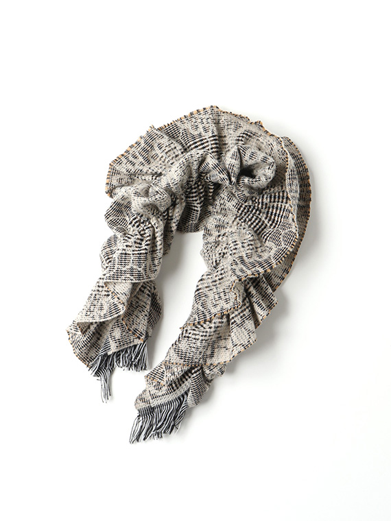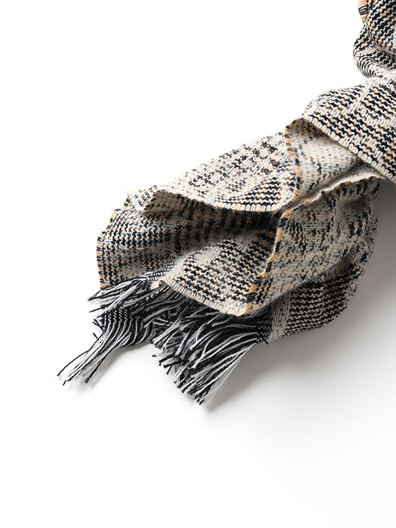 ガンクラブチェック風のメンズライクなチェックに幾何柄のジャガードを組み込んで織り上げました。