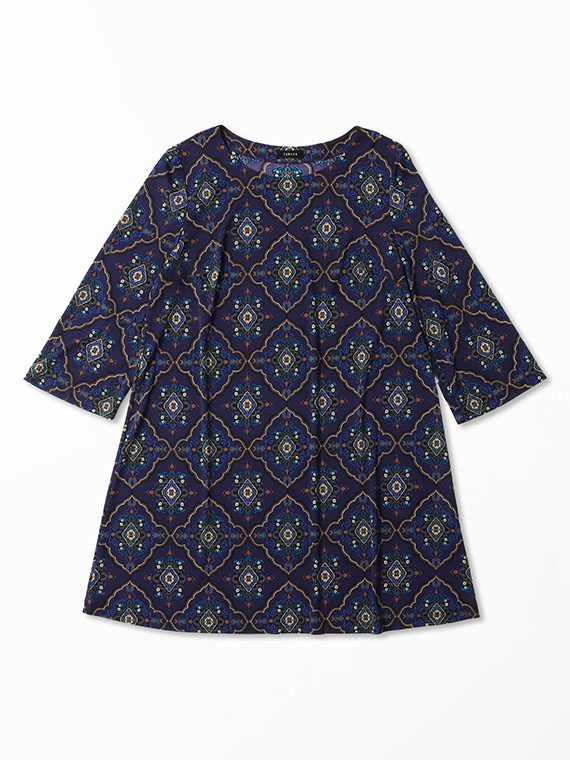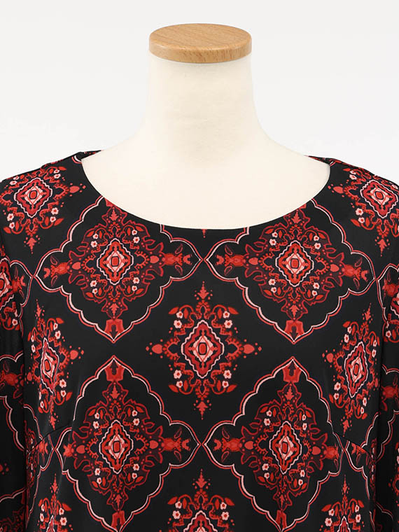 シックで印象的なバロックプリントを存分にお楽しみいただけるよう、ミニマルデザインで仕立てたAラインシルエットのチュニックです。