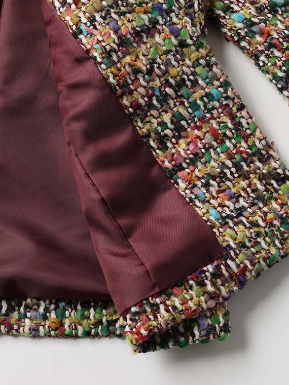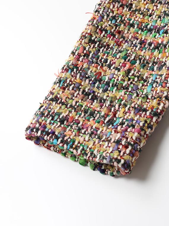 タテ糸とヨコ糸ともにさまざまな意匠糸を使用して織りあげたフランス製のファンシーツィード生地です。