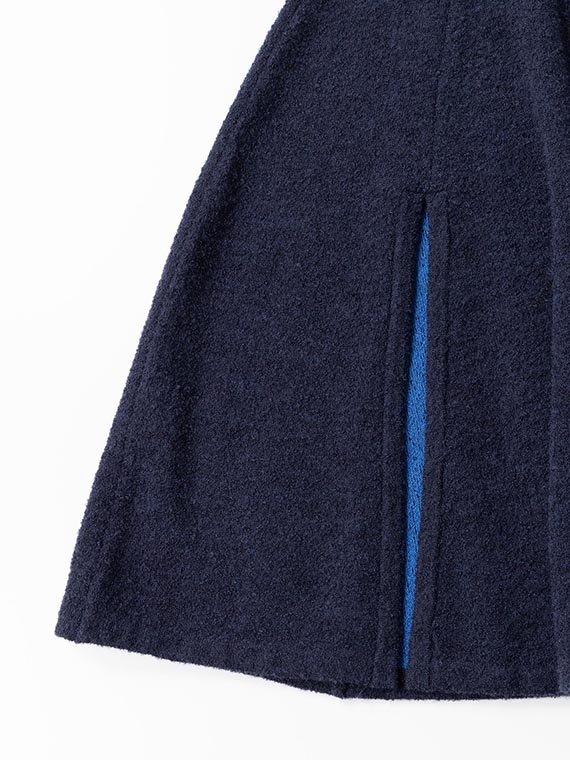 表面はブークレー糸でもこもことした表情があり、裏面はポリエステルの伸縮性の高い糸を高混率で使用しています。
