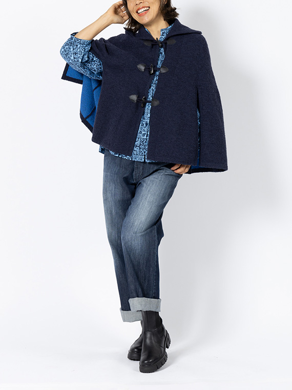 前開きはトグルボタンで留められるようになっており、遊び心を満たします。