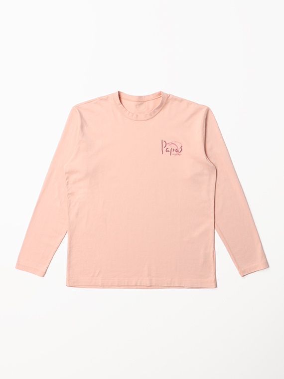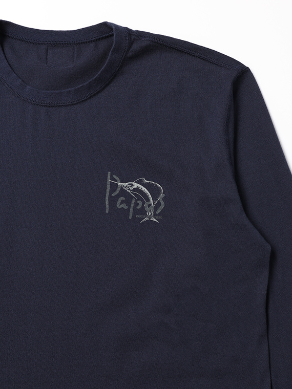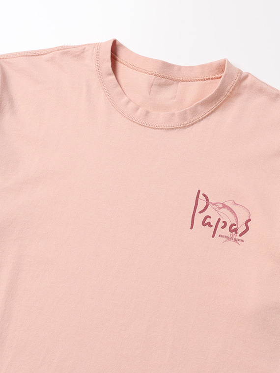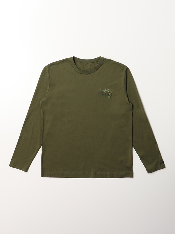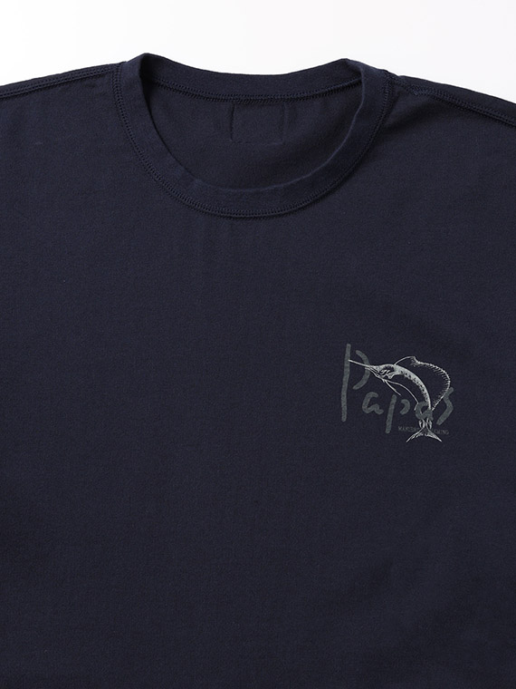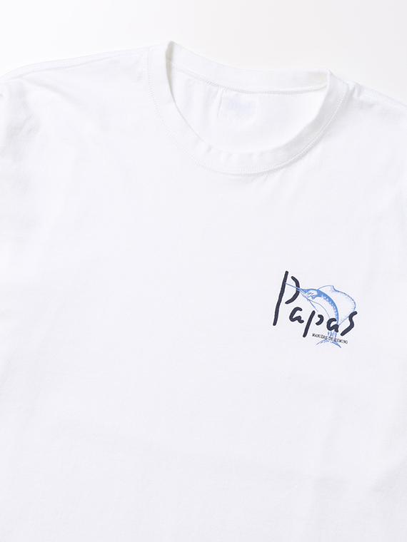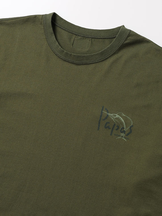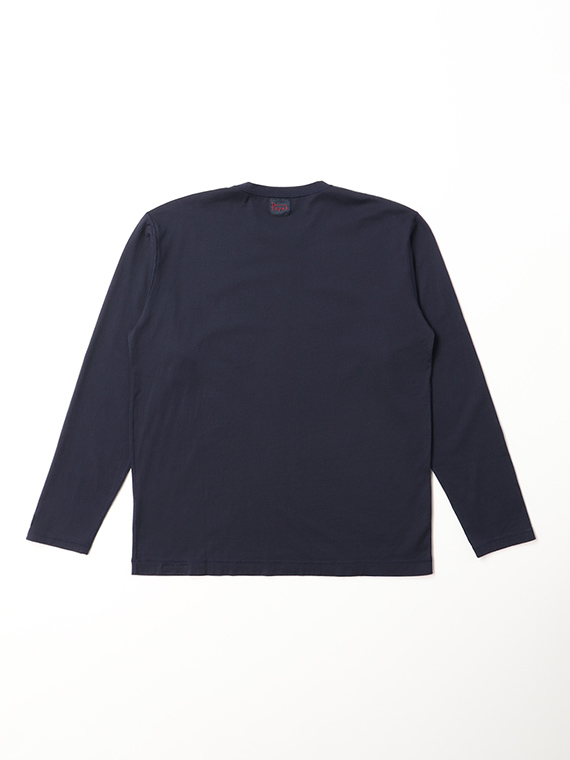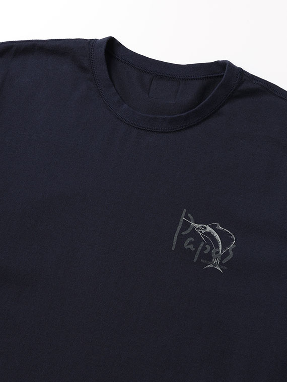 生地は、40番手のコットン糸を2本撚り合わせています。この40/2という製法により、1本の糸に十分な強度を持たせ、生地自体にしっかりとしたハリコシが生まれ、耐久性にも優れた生地に仕上がりました。透け感がほとんどなく、白でも安心して着用できる肉感も大きな特徴です。流行に左右されることなく、Tシャツの定番とも言えるベーシックな素材です。