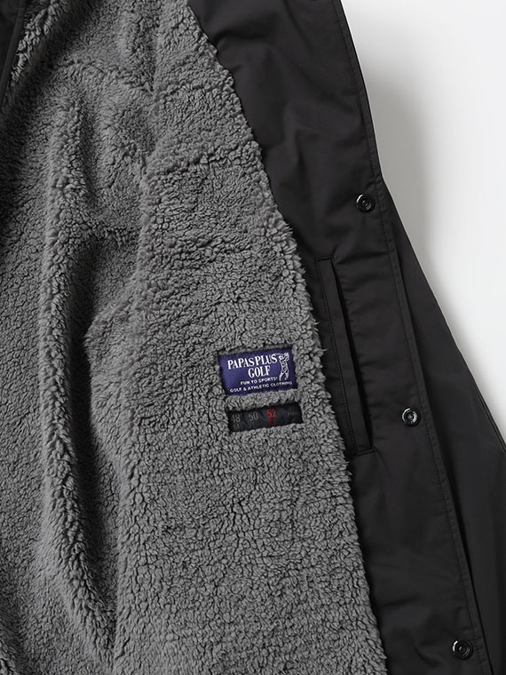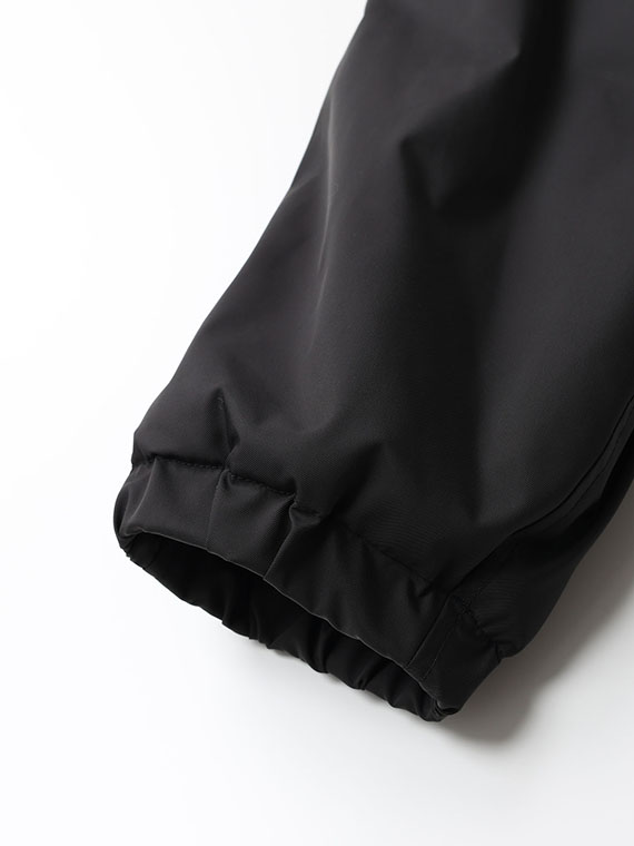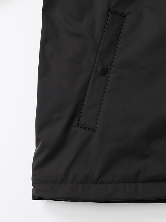 表生地は、タテ糸に100Dポリエステル、ヨコ糸に75Dポリエステルを使用したストレッチツイル素材です。マイクロポリエステルの強撚糸を使用している為、高密度ながら独特の柔らかさと光沢が出過ぎず上品な質感に仕上がっています。ヨコ糸にはストレッチタイプのポリエステルを使用することで着心地の良さ・フィット感等の動きやすさも実感いただけます。