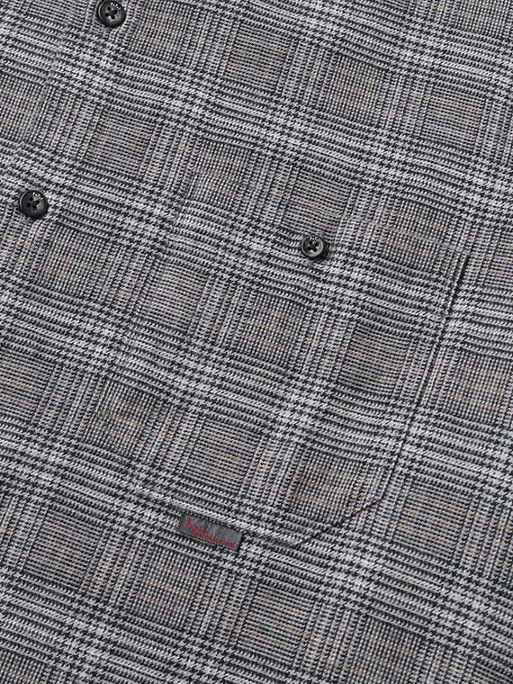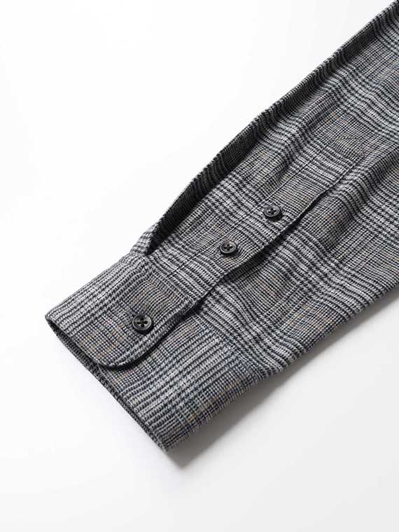 タテ・ヨコ共に20/1オーガニックコットン糸を使用した綾織物です。ベースのオーガニックコットンは甘撚りを使用していますので軽く膨らみが有り非常にソフトです。グレンチェック柄は多色の配列で構成する事で特徴的で立体感ある柄感です。環境に配慮しながらデザイン性でも差別化されたネルチェックです。仕上げ加工の起毛によるウォーム感もこの素材の特徴です。