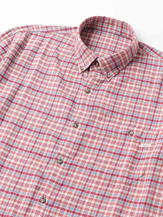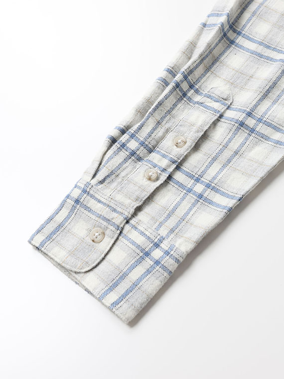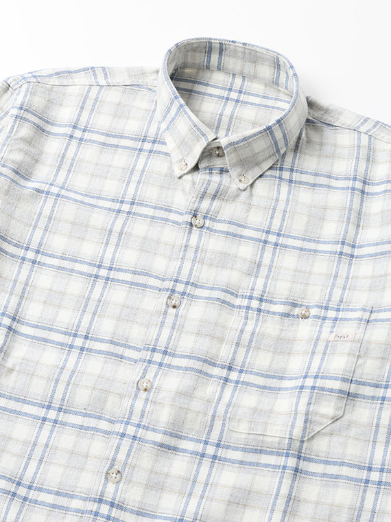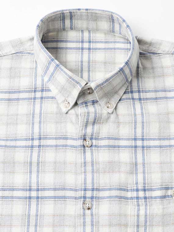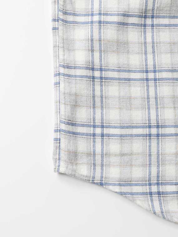タテ・ヨコ共に20/1綿糸を使用したビエラチェックです。バランス良くチェックの柄を表現する為に2/2綾の組織にしています。