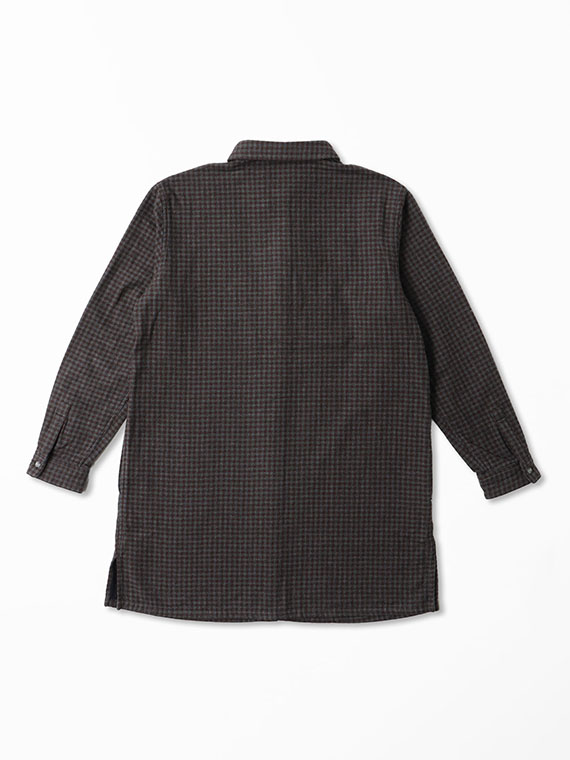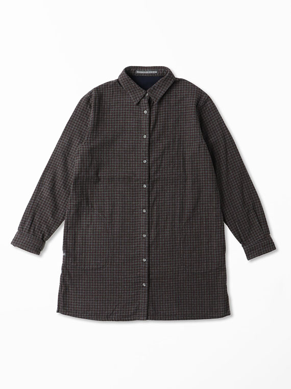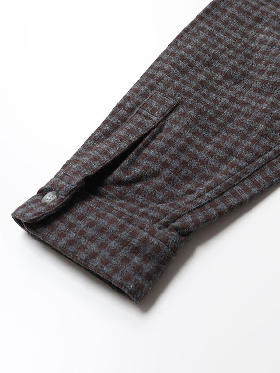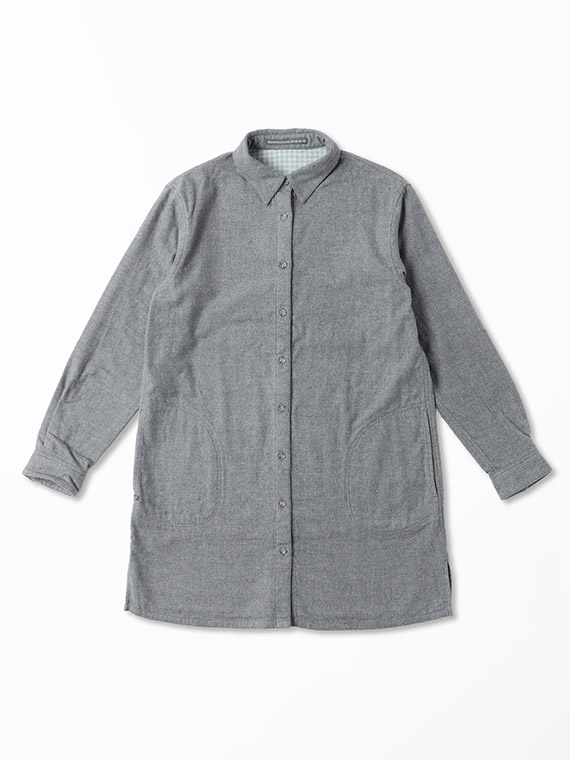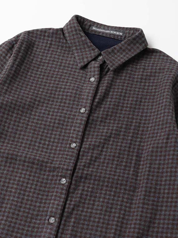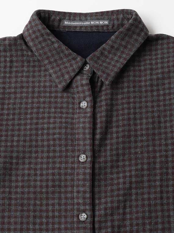 表は無地、裏はギンガムチェックの2枚の生地を組み合わせており、ちらっと見える裏地が良いアクセントになります。手洗い可能なのも嬉しいポイント。ロングシーズン快適に着られる一枚です。同素材を使用したフード付きシャツもおすすめです。