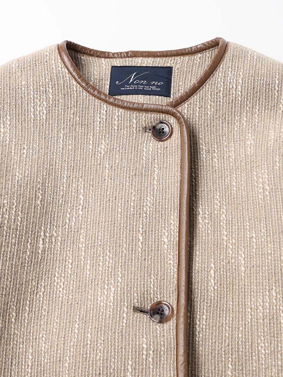 ドロップショルダーでカジュアルな印象ながらも、全体的に上品な印象にまとまります。どんなアイテムとも合わせやすく、おすすめのコートです。同素材を使用したステンカラーショートコートもございます。