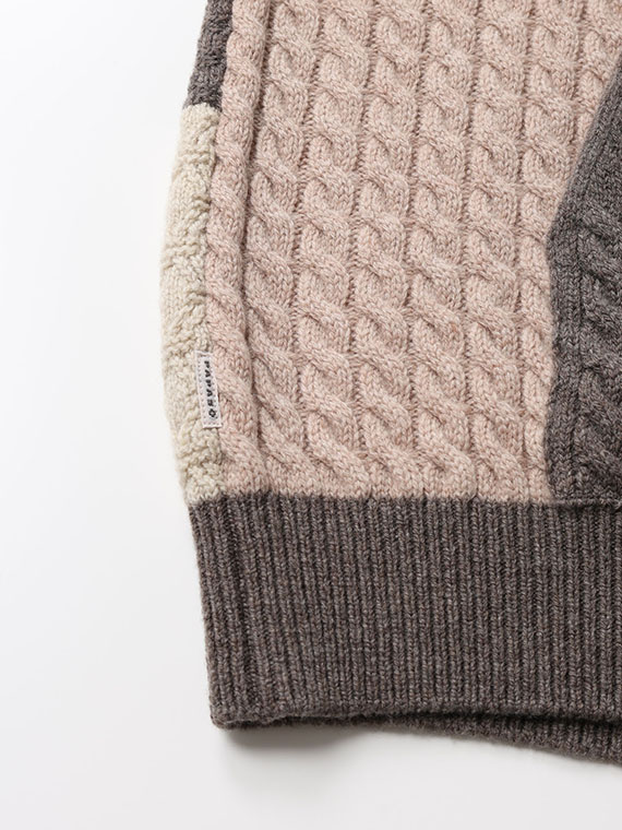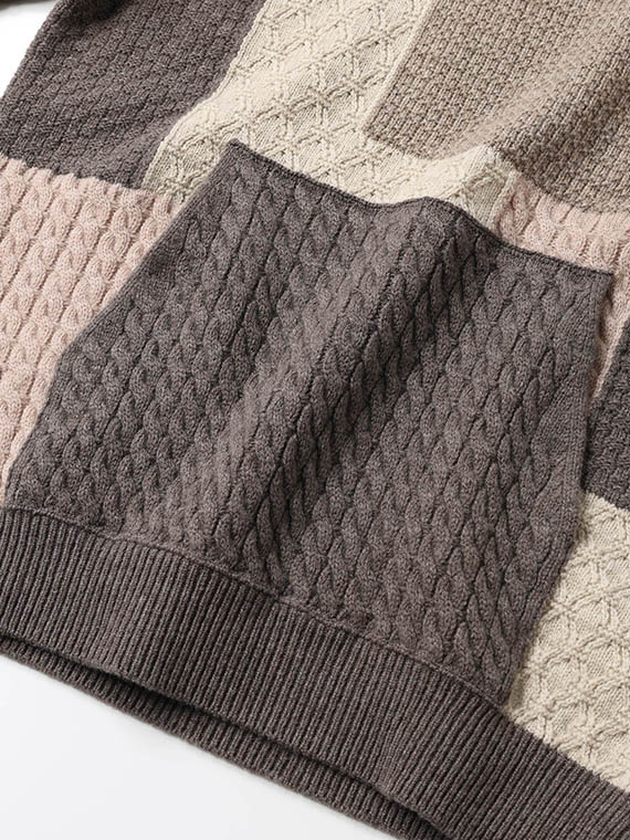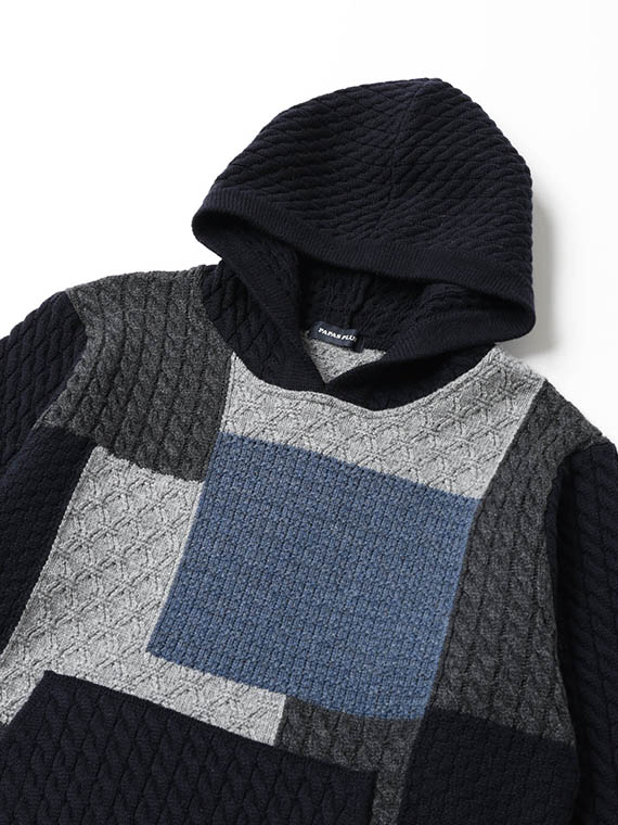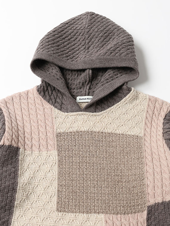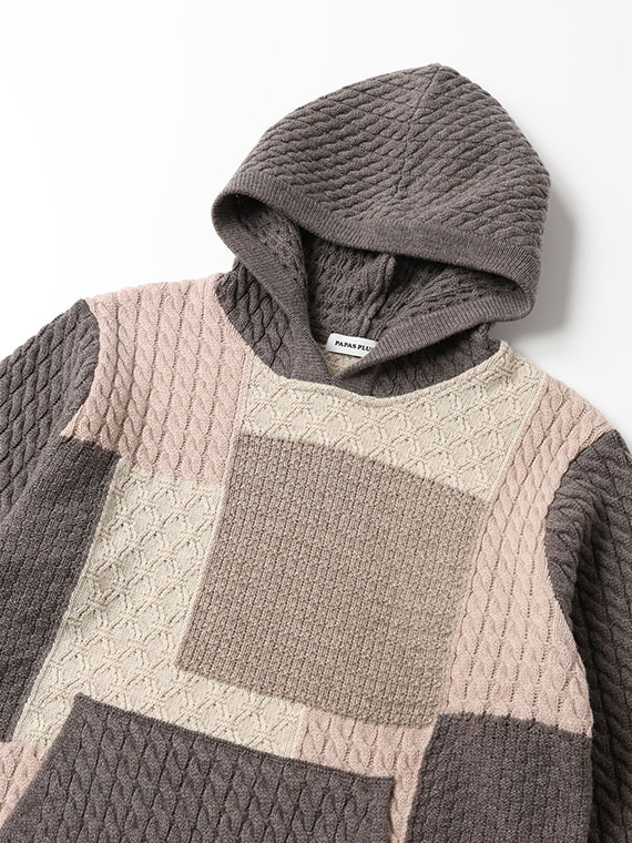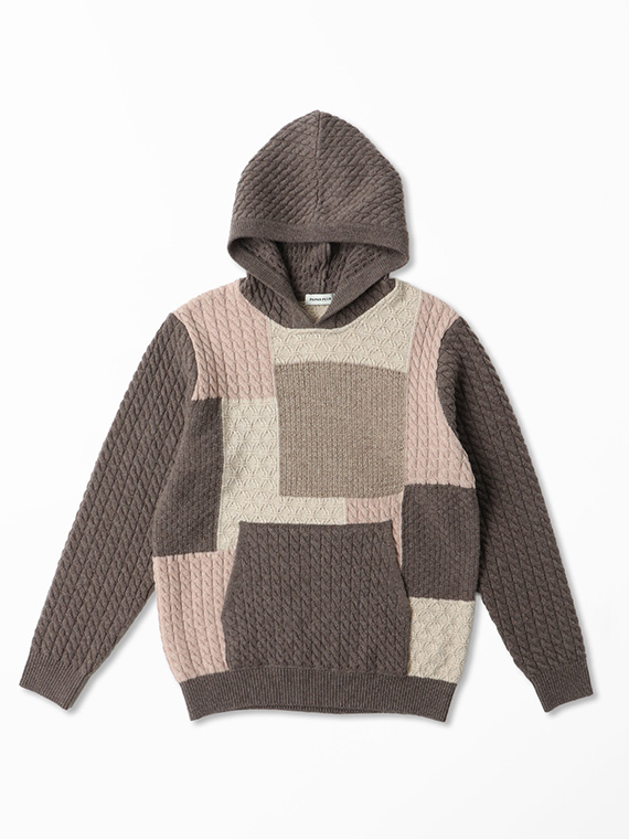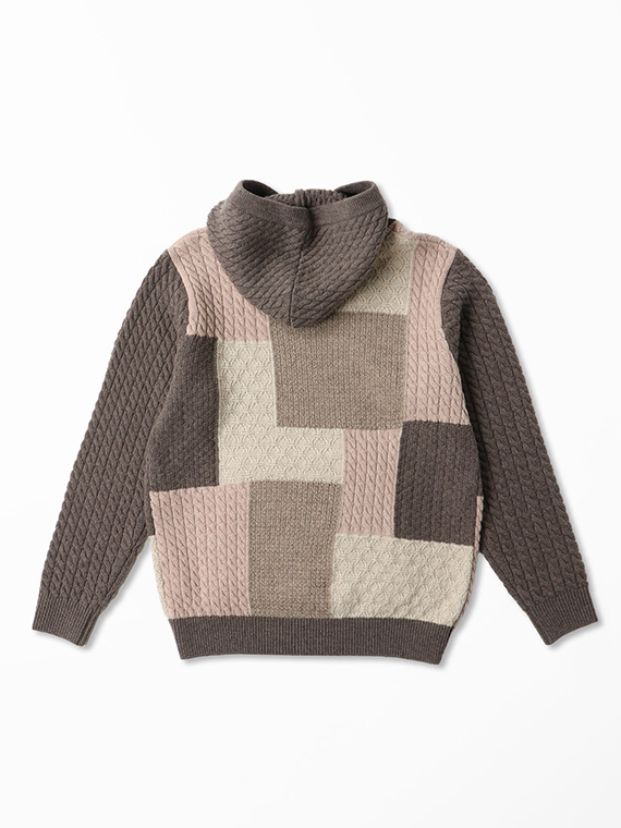 4種4色ケーブル パッチワーク風 7G ニットパーカー