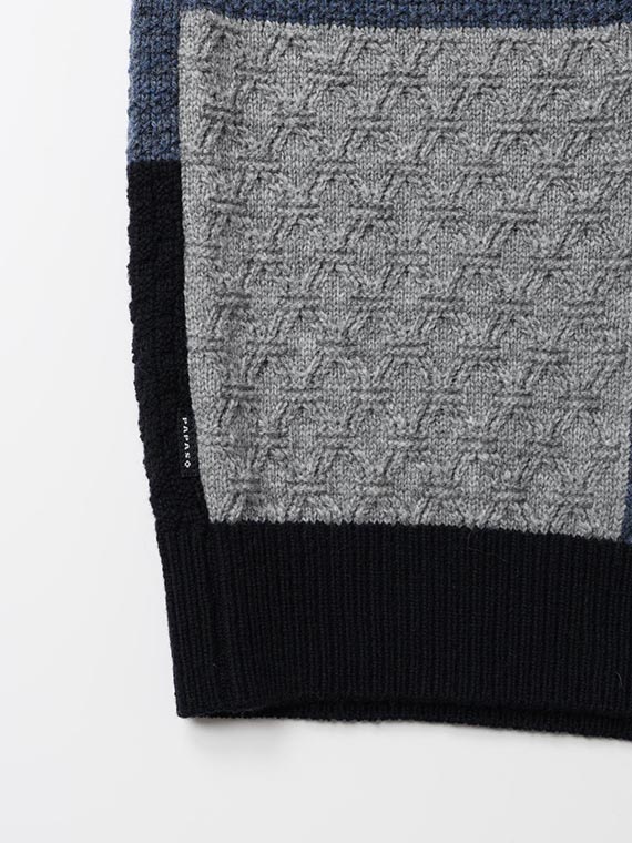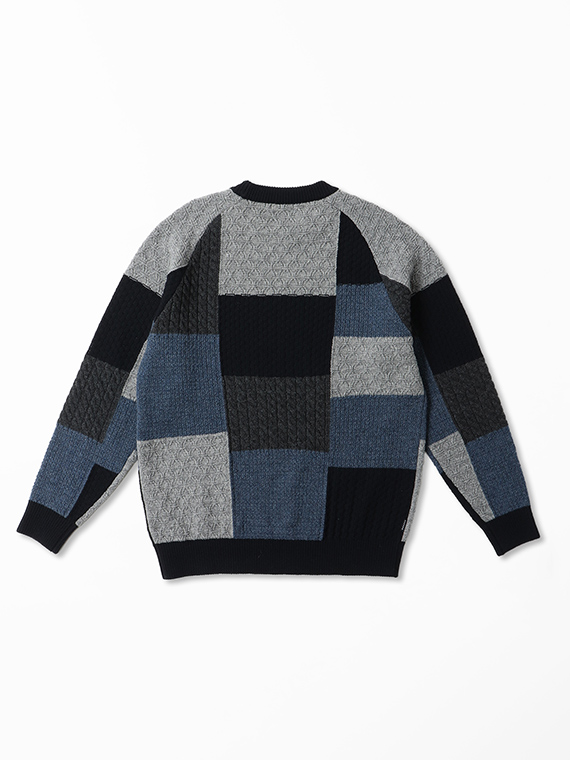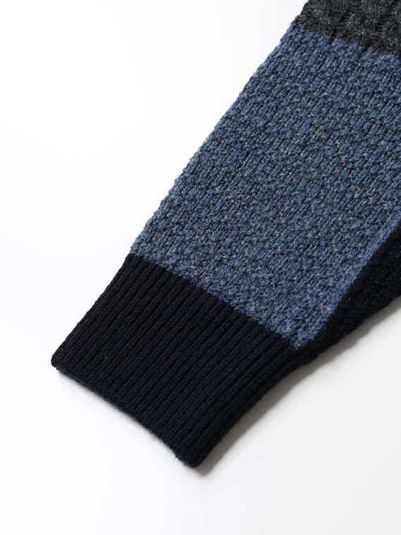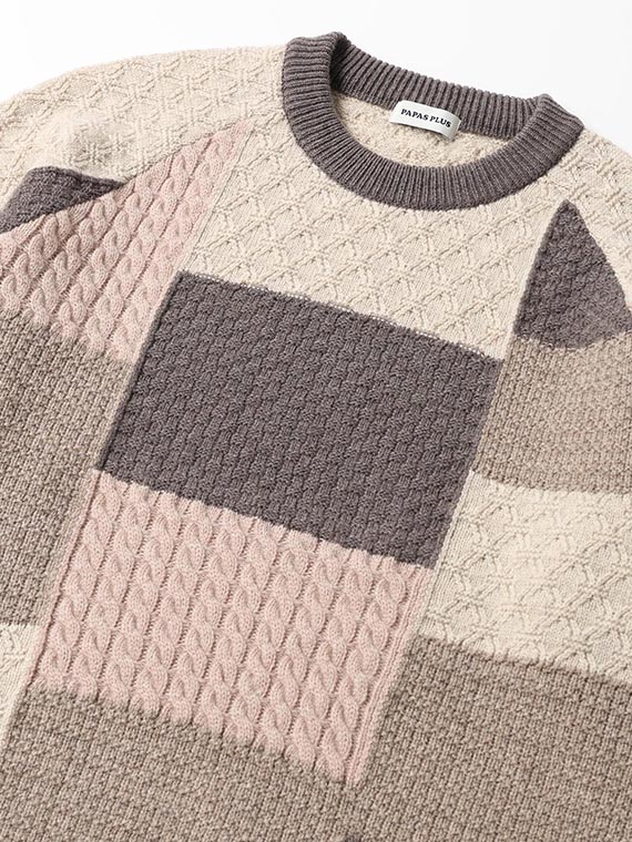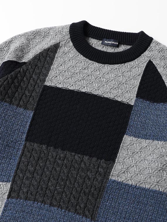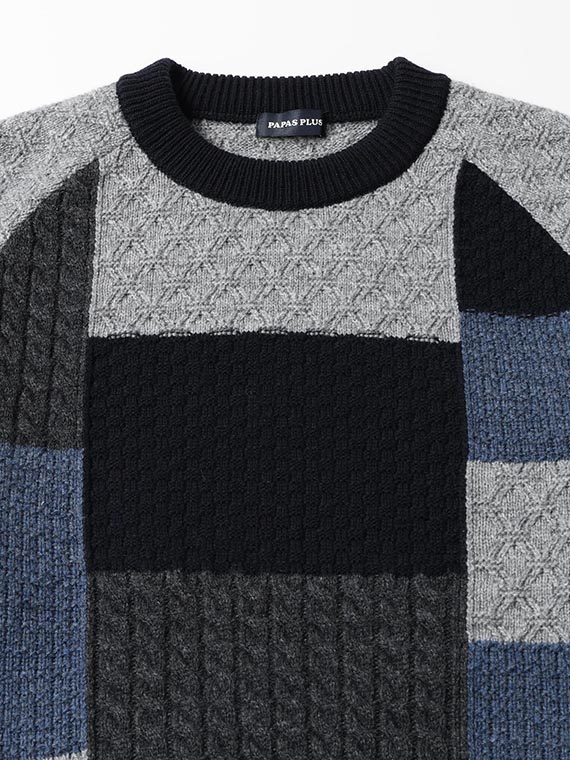 4種4色ケーブル パッチワーク風 7G クルーネックセーター