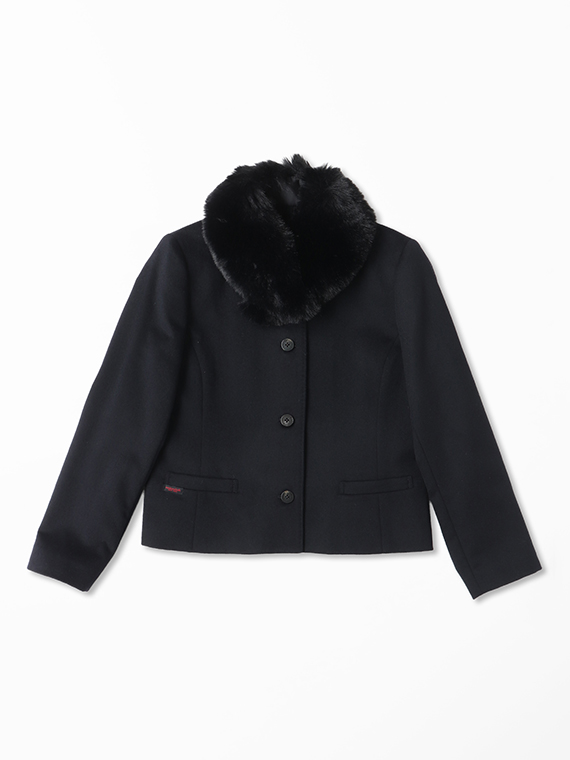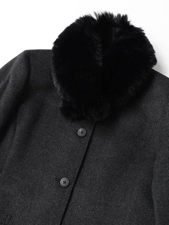 カシミヤフラノ エコファーマフラー付きノーカラージャケット