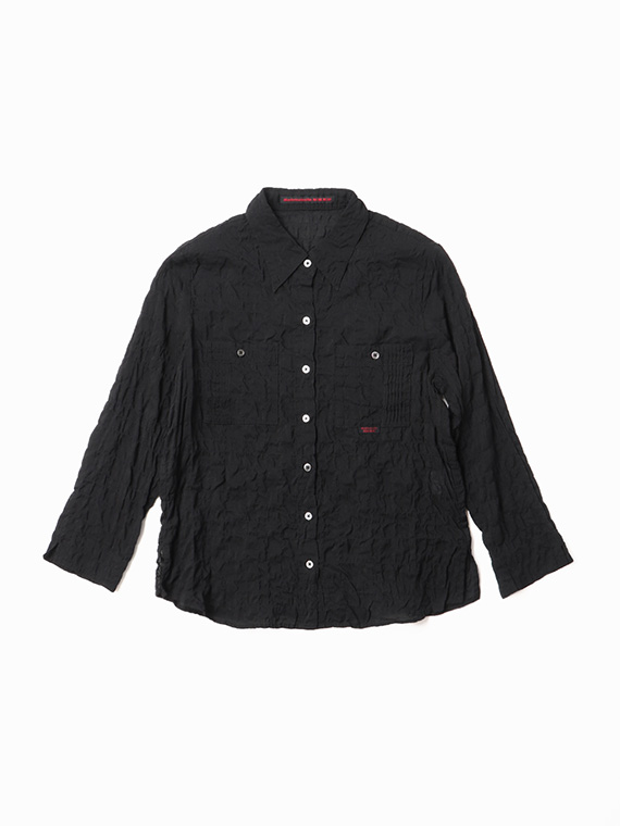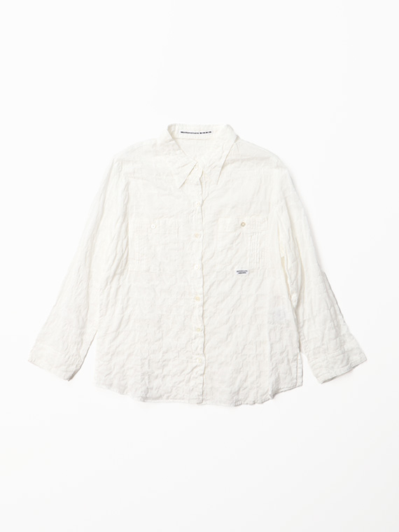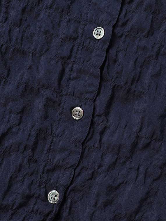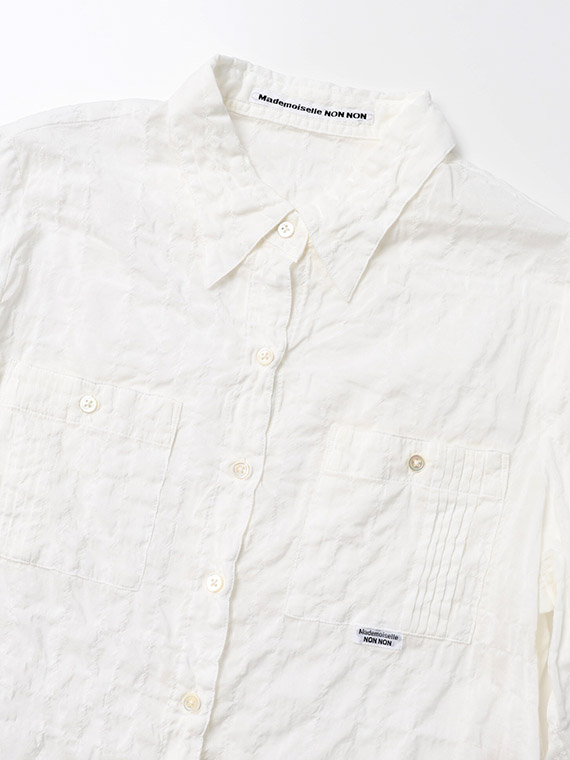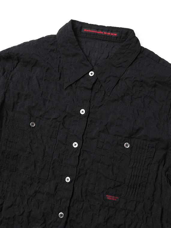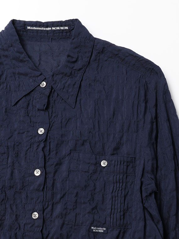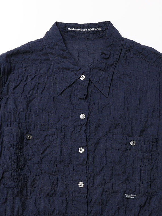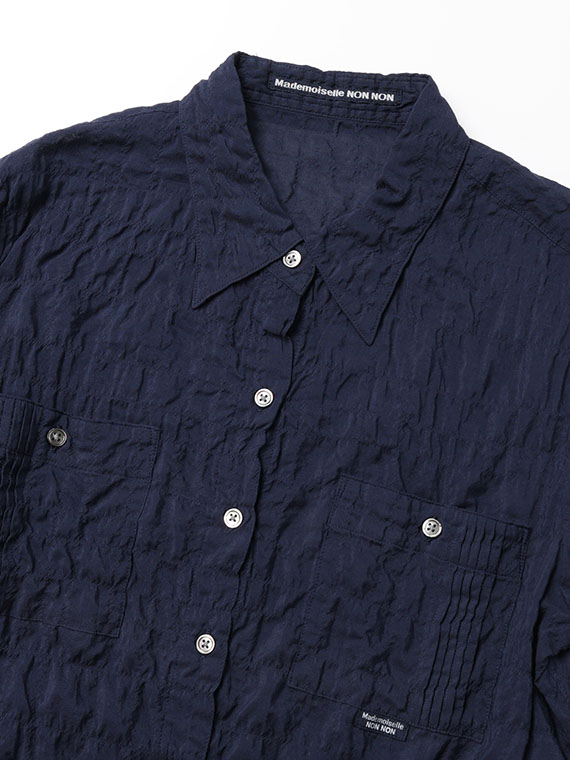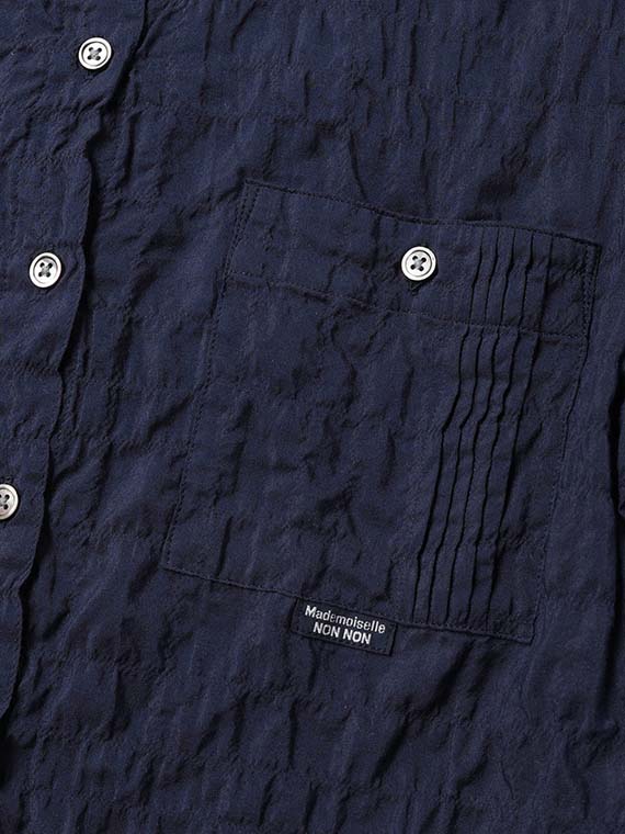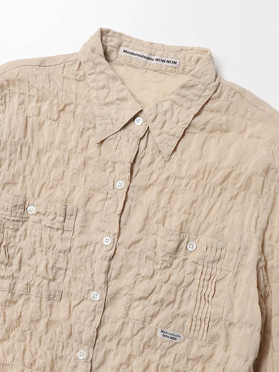ピンタック入りのポケットが両胸についたブラウス。羽織として、中にTシャツやタンクトップを合わせていただくのもお勧めです。ノンアイロンなのも嬉しいポイントです。