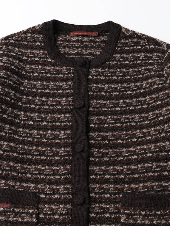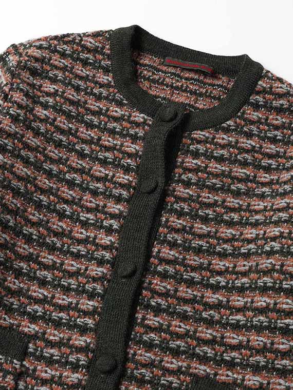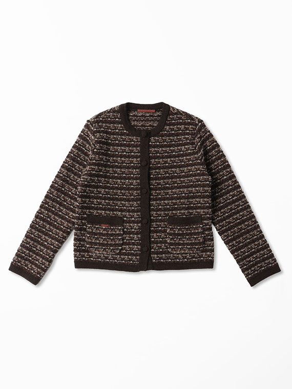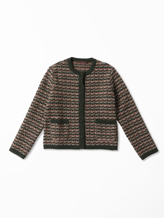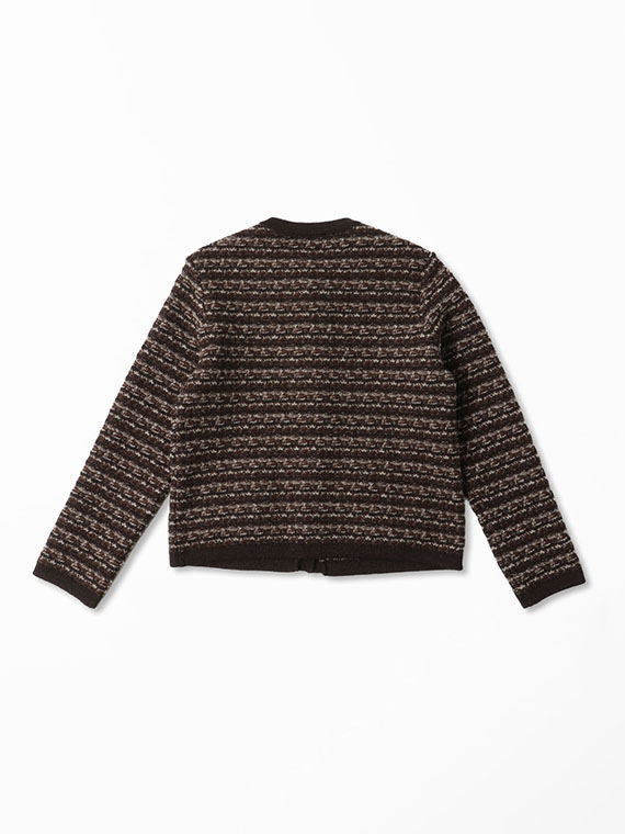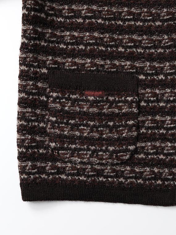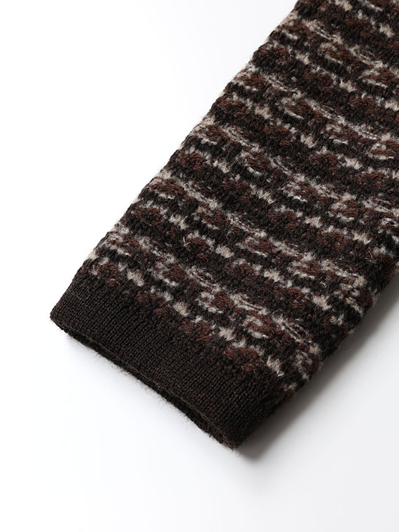 コッツウォルズ(Cots wolds)とフェアリーブークレ(FAIRY BOUCLE)の糸をJQ組織で編み上げたツィーディーな雰囲気が魅力的な素材です。Cots woldsのハリコシと粗野な風合いに、FAIRY BOUCLEのバルキー性と肌触りの良さが混ざり合い、独特な風合いと表面感のある素材に仕上がりました。