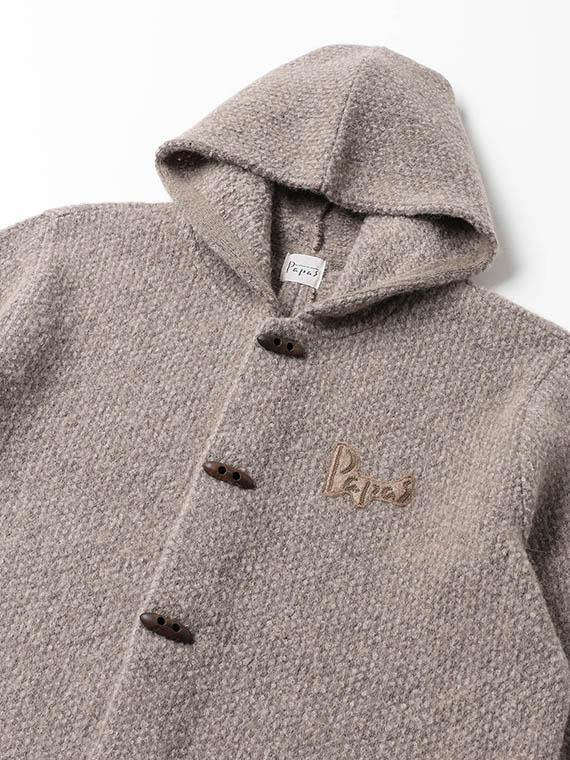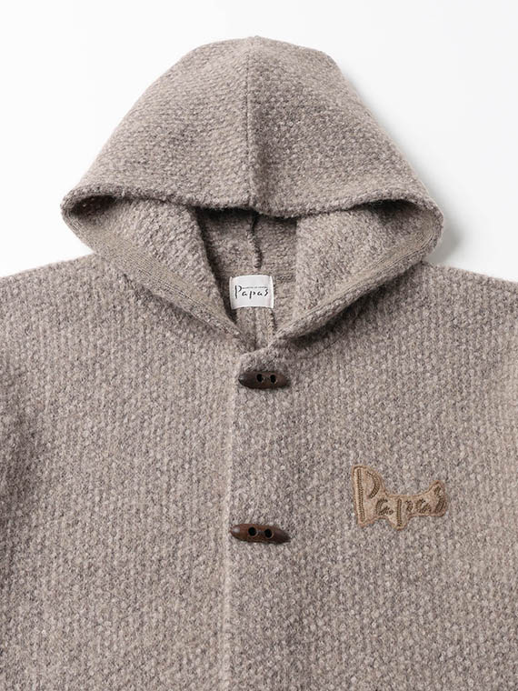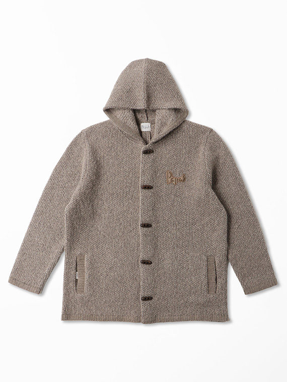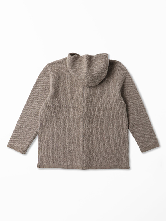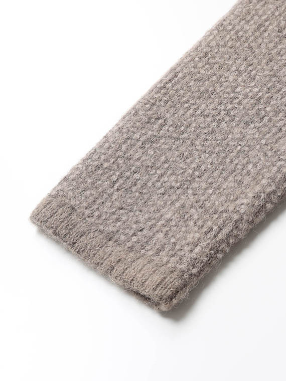 アルパカの中でもより繊細で滑らかさに優れたベビーアルパカを使用してブークレ糸にしています。ブークレのループは空気を多く含む構造になっている為、とても軽く、アルパカ独自の滑らかで膨らみのある風合いに仕上がります。