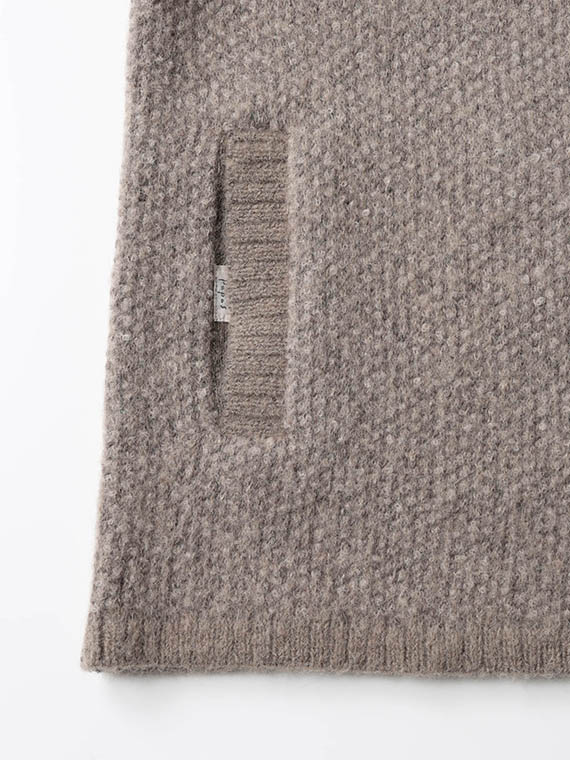 アルパカの中でもより繊細で滑らかさに優れたベビーアルパカを使用しています。毛足があり表現豊かでとても軽く、アルパカ独自の滑らかで膨らみのある風合いに仕上がります。