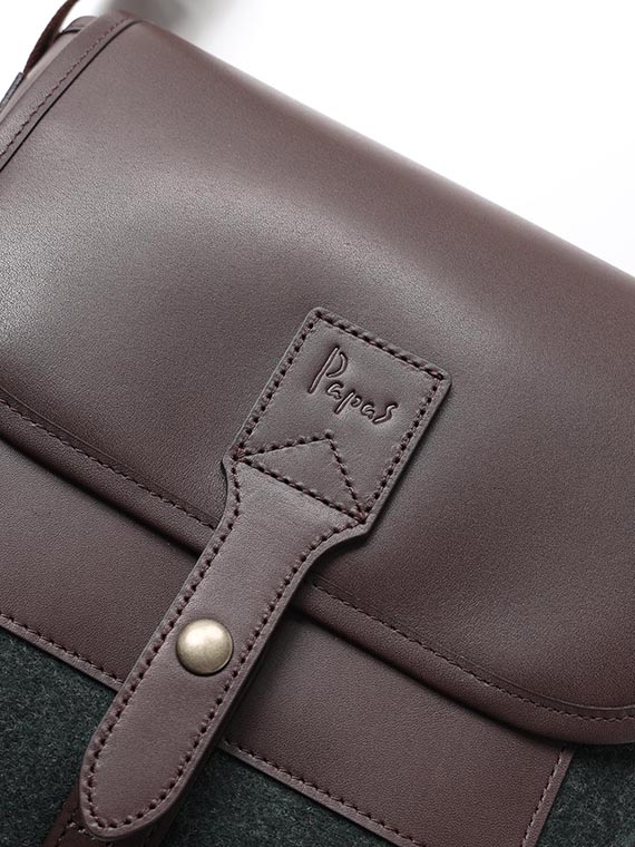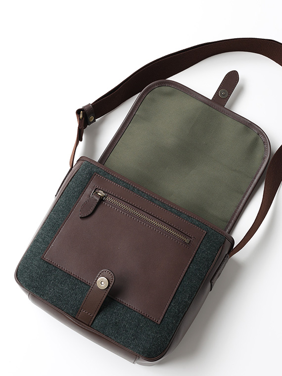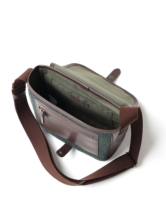 ウール部分は、タテ・ヨコ共に1/14紡毛糸を使用した接結二重の素材です。2枚の生地を接結糸で織合わせ無地面とチェック面を構成しています。その後、冬物ウール素材の特徴でもある縮絨加工を施しています。表裏それぞれの生地が縮絨されるので弾力性があり保温性にも優れた仕上がりになります。TOP糸を要所で組み合わせることで立体感のある奥深い発色になります。両面に起毛加工も施して有りますので肌触り良い手触りです。