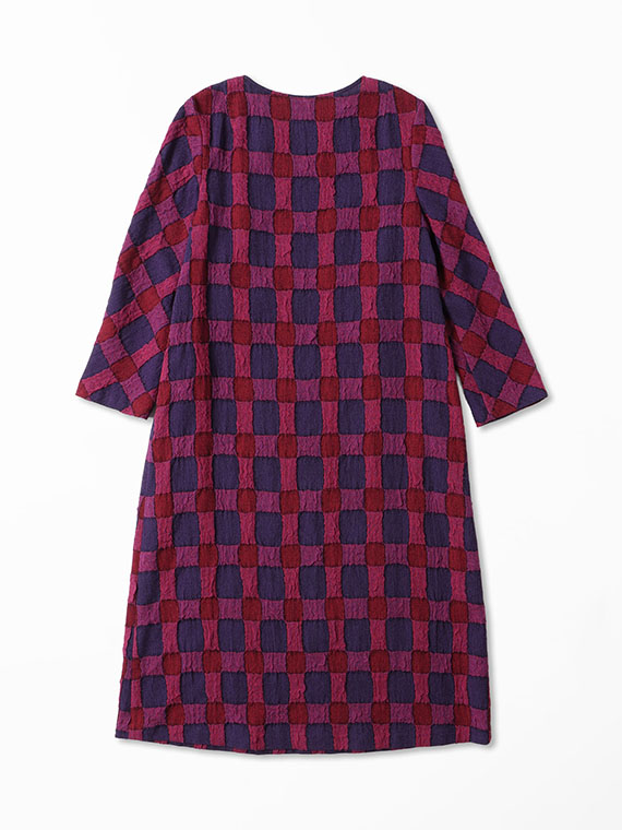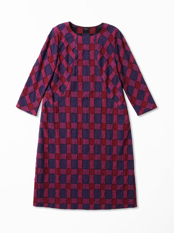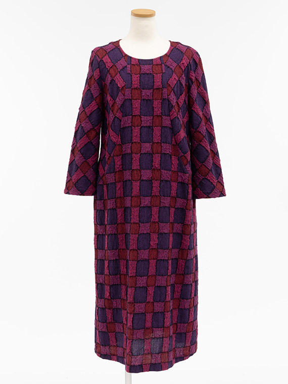 ウール/コットン 風通 ガーゼ チェック ワンピース