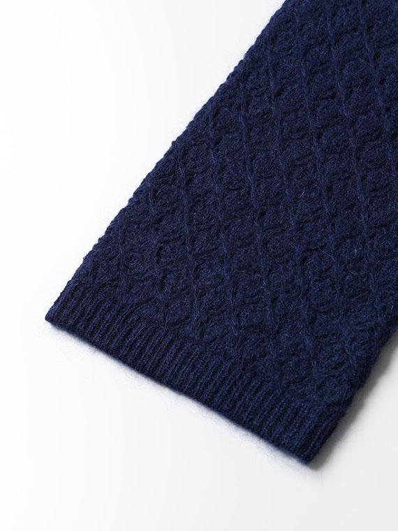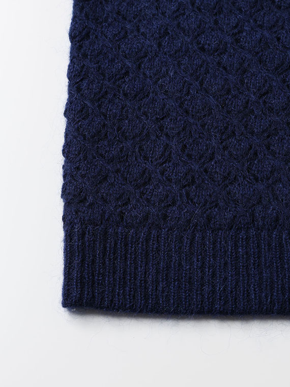 パイナップル編みをあえて度目を甘くして編み上げているため、空気を含んだように軽やかで、手編みのような温もりあふれる風合いに仕上げられ、真冬でもしっかりと体温を逃がさず包み込んでくれます。