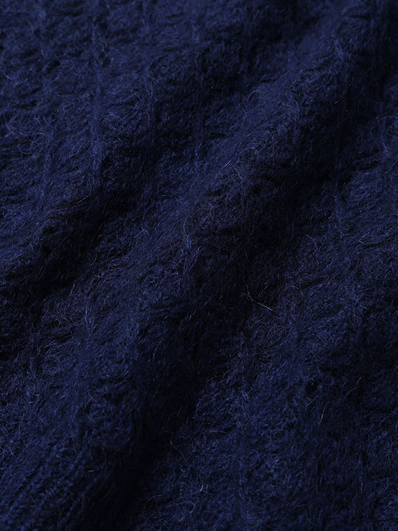 モヘアの持つ特有の優しい光沢と、毛足の長い柔らかな風合いが、見た目にも温かくエレガントな印象を与えます。
