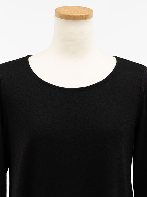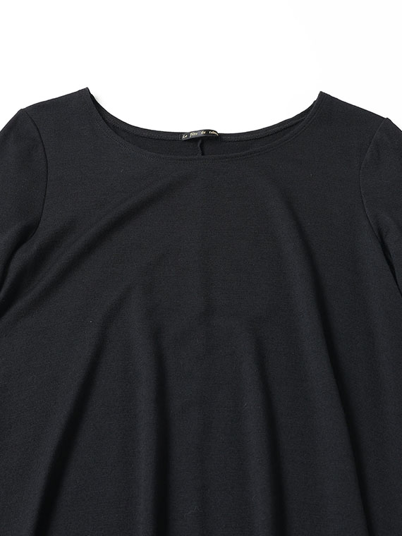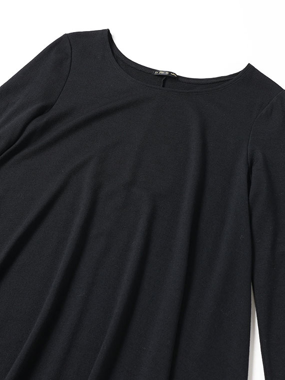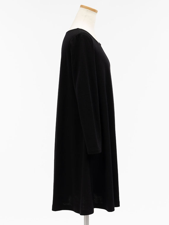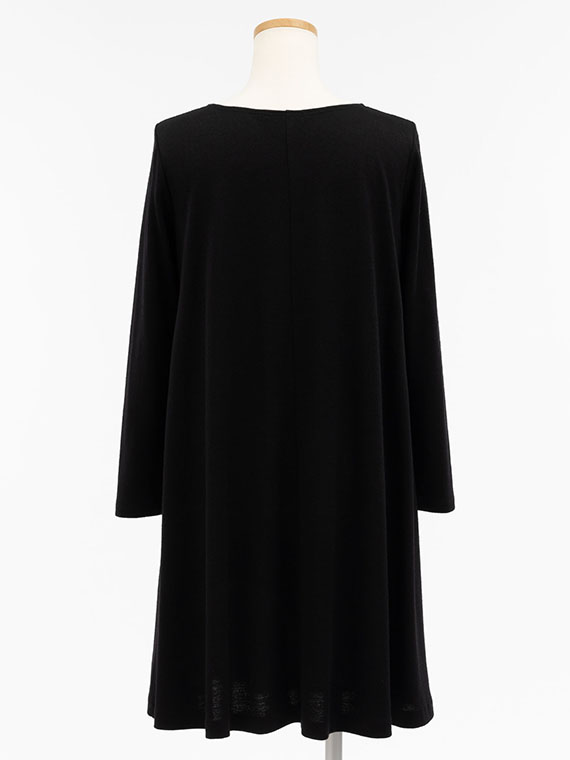 贅沢に生地を使ったAラインシルエットで、ウール天竺の特性を活かしたドレープが、体からこぼれ落ちるようにたっぷりと美しく表現されています。