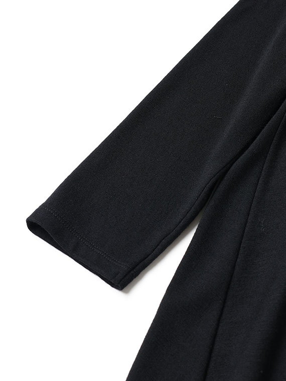 黒一色でありながら、ウールの自然な光沢がもたらす陰影が、深みのある洗練された表情を醸しだします。