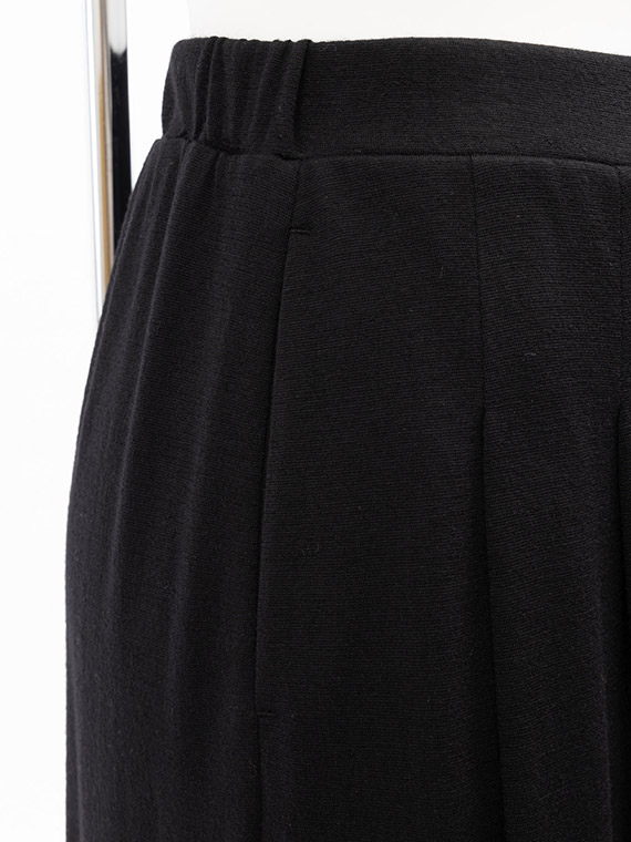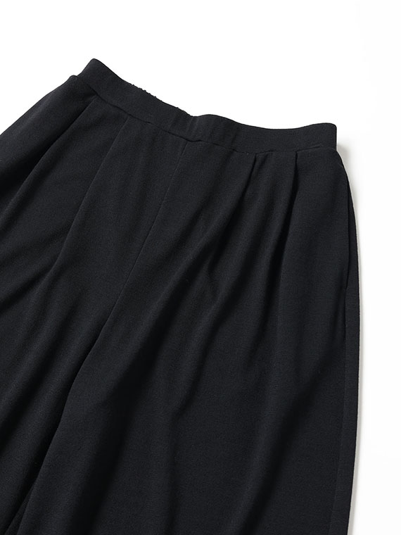 前身頃には左右に2本ずつ、計4本のタックを深く入れることで、動くたびに優美なドレープを生み出し、スカートのような豊かな表情を演出します。