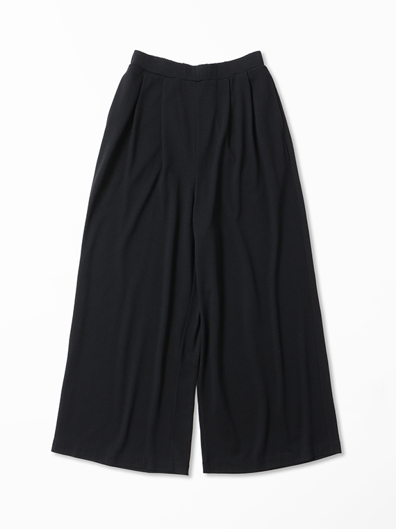 天然素材ならではの、ずっしりとした豊かな落ち感が、このワイドパンツの贅沢なドレープと美しいフルレングスのシルエットを際立たせてくれます。
