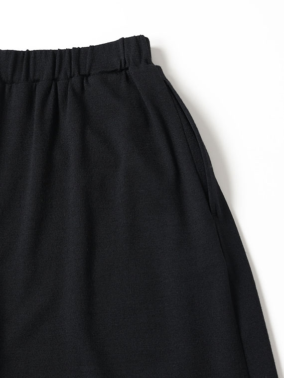 ウエストは、後ろの部分のみゴム仕様にしておりますので、穿き心地はとても楽でありながら、前から見るとすっきりと洗練された印象を保ちます。