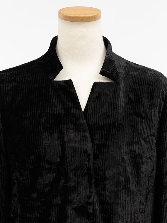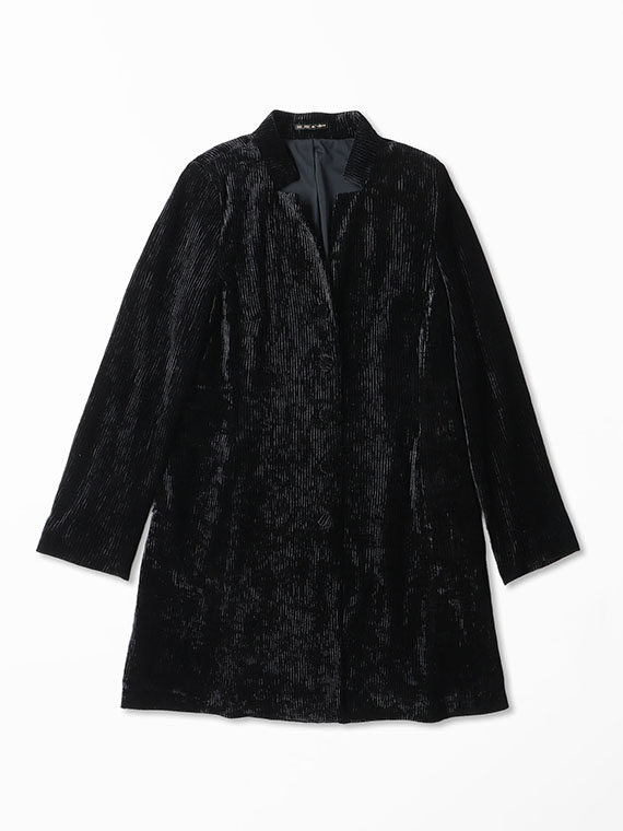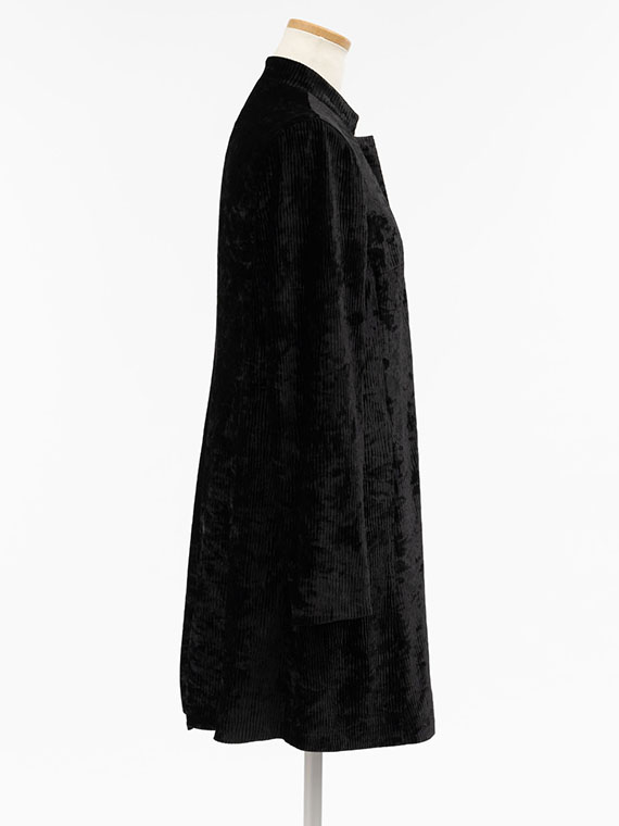 裾に向かって広がるシルエットは、ベロア素材の重みも手伝って、エレガントな美しいドレープを生み出します。