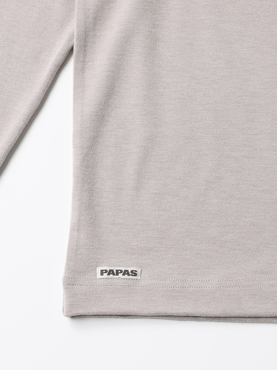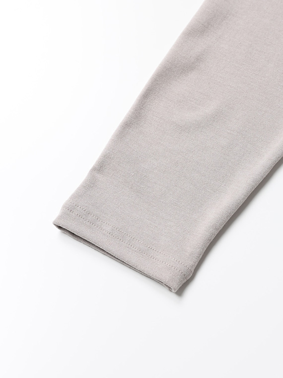 マイクロアクリルというレーヨン繊維をブレンドした暖かくて柔らかな肌触りの生地です。軽くて保湿性があり、通気性や吸湿性にも優れています。また、ストレッチも効いているため、心地よくお召しいただけます。肌寒い季節に快適なインナーです。