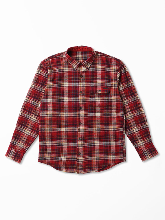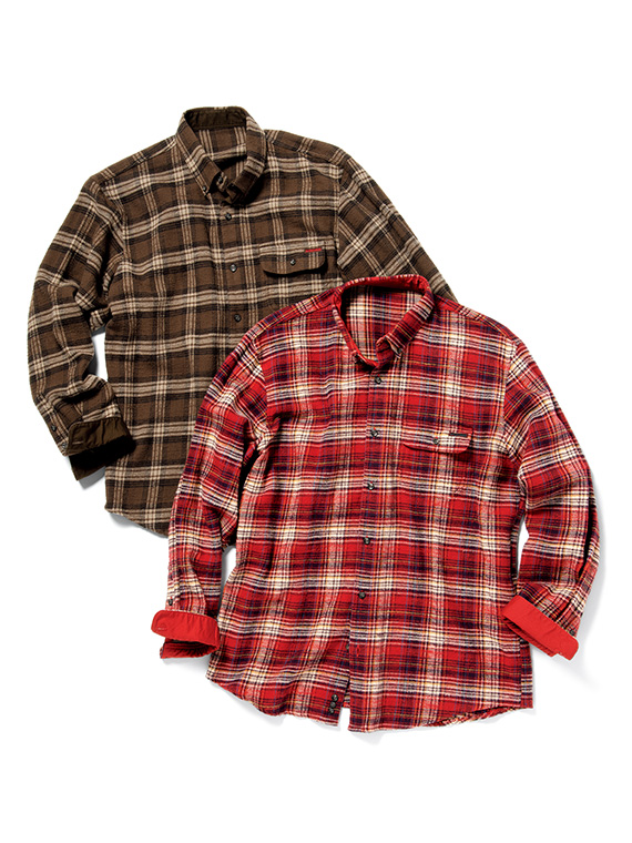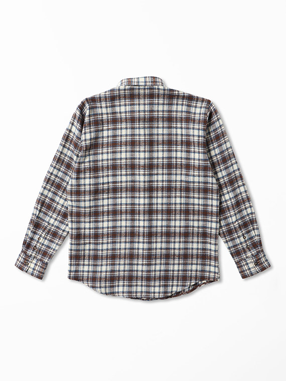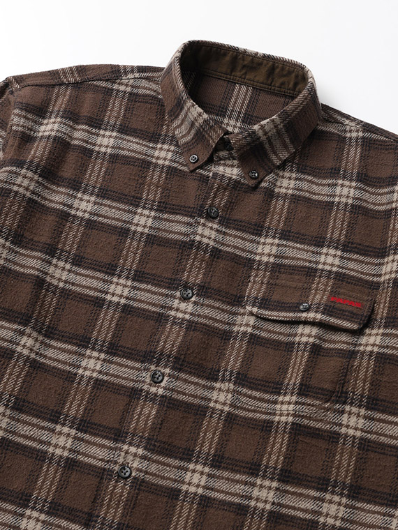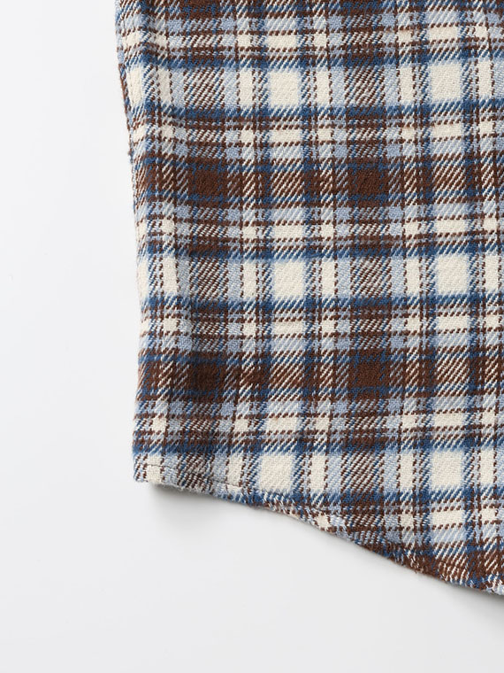 生地は、タテ糸・ヨコ糸共に綿7/1カード糸を使用した肉厚の先染めツイルチェック素材です。起毛とエアーワッシャー加工を施すことで、柔らかさや暖かさを感じていただける一着。