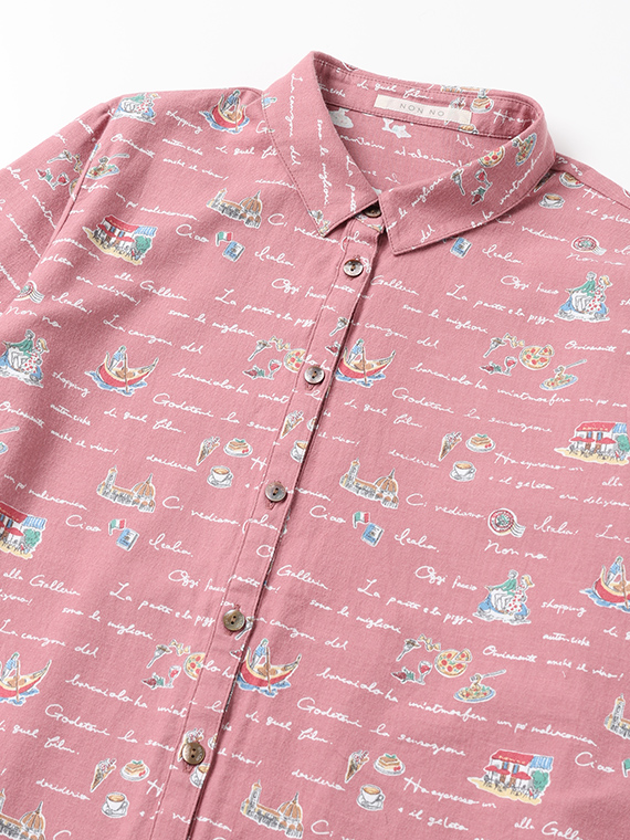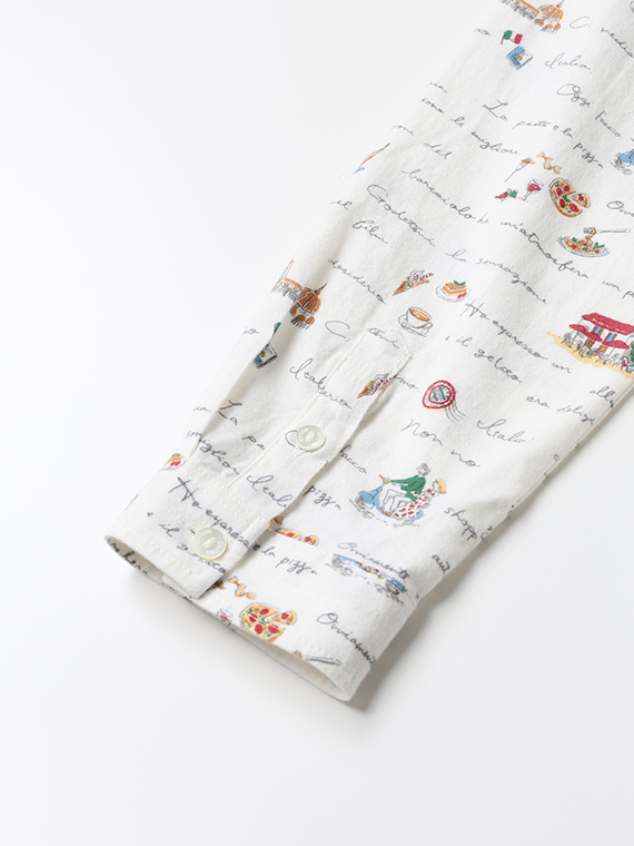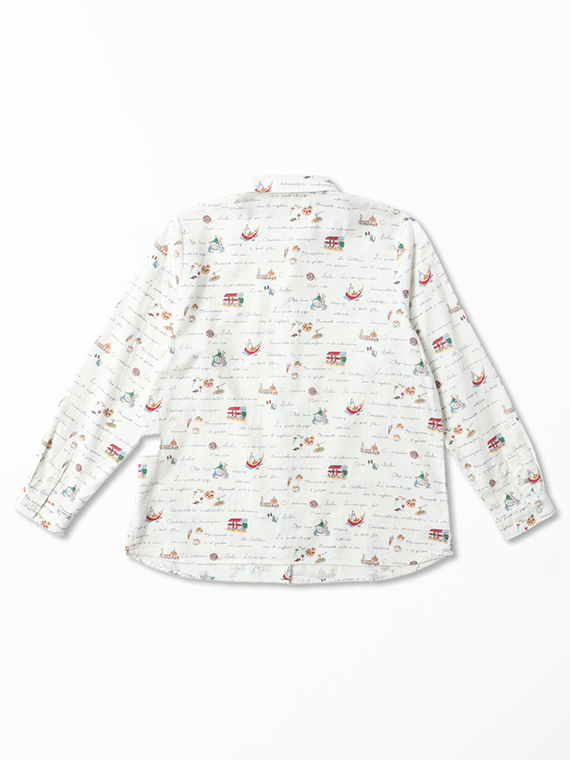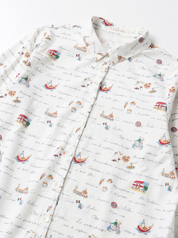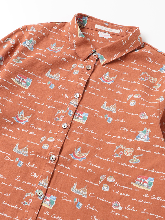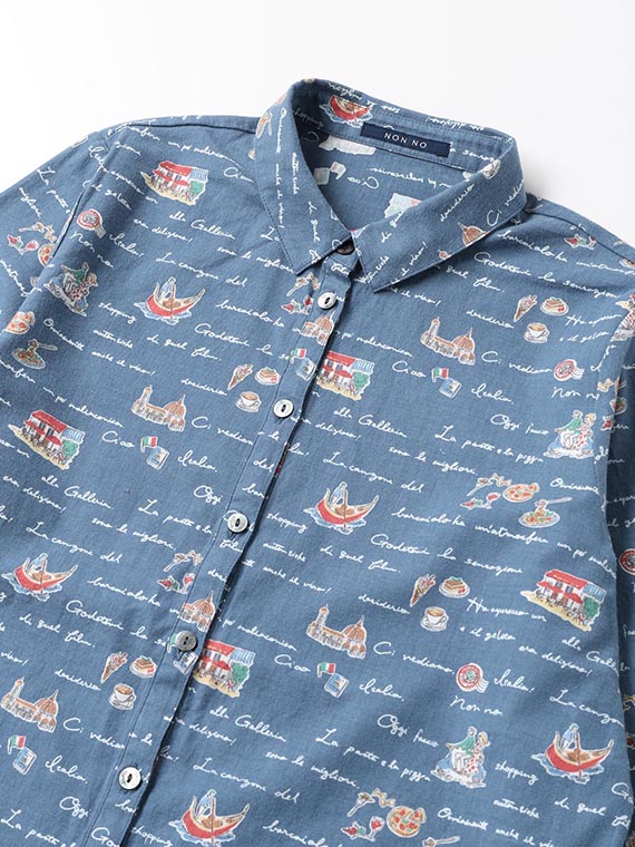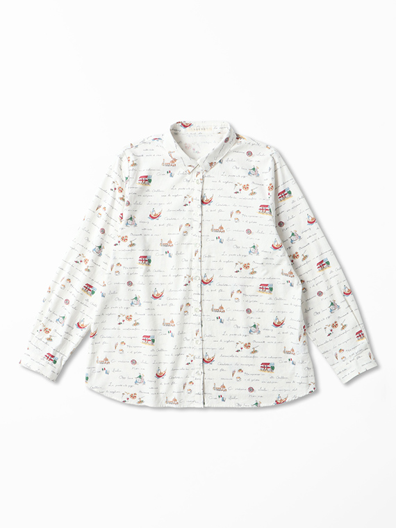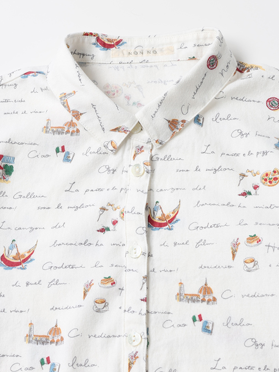 旅のワンシーンを切り取ったようなアートフルなデザインが、装いを華やかに彩ります。上品にまとまるバランスの良いプリントで、コーディネートの主役にぴったり。中にインナーを着てシャツを主役にするコーディネートはもちろん、ニットやカーディガンのインナーとして衿をのぞかせると、さりげなく個性を演出できます。上質な素材と丁寧な手捺染による繊細な色表現をお楽しみください。