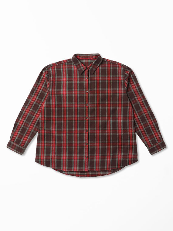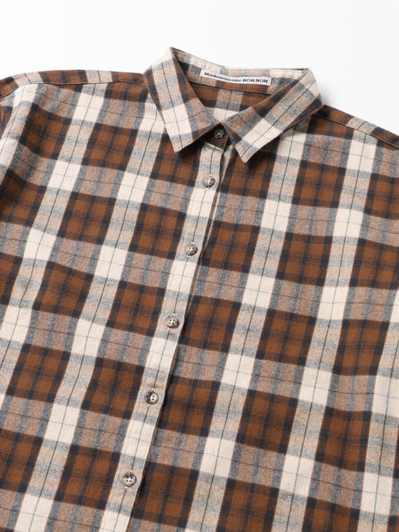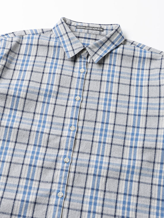 同素材を使用したバンドカラーチェックシャツもございます。