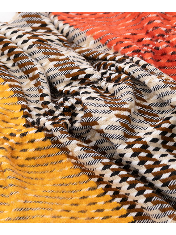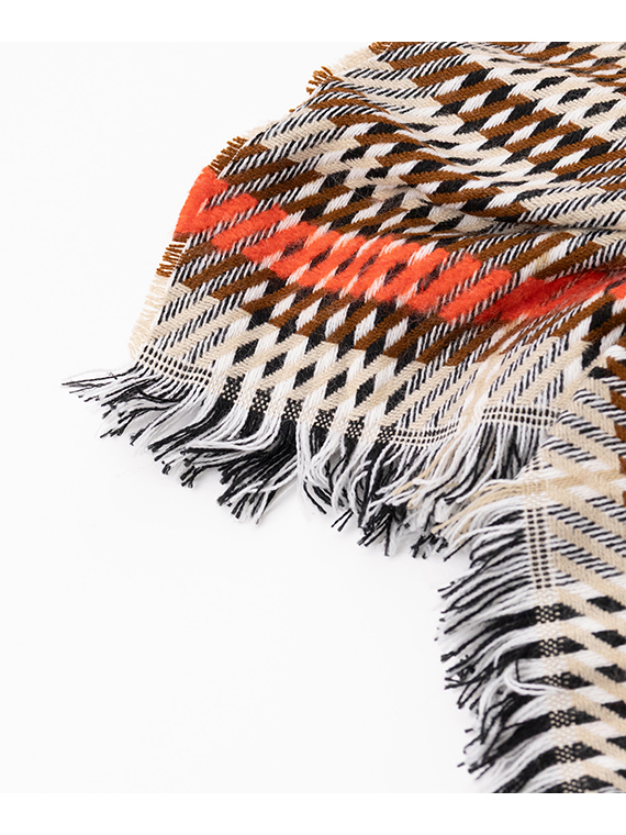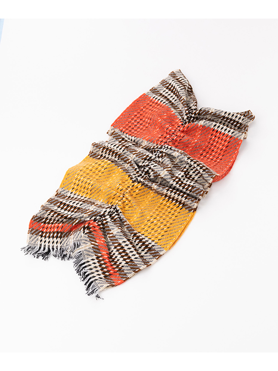 フランス製の乾式アクリルを使用し、発色の美しさと繊細な光沢を兼ね備えた素材です。まるでカシミヤを思わせるしっとりとなめらかな肌触りが、首元をやさしく包み込みます。