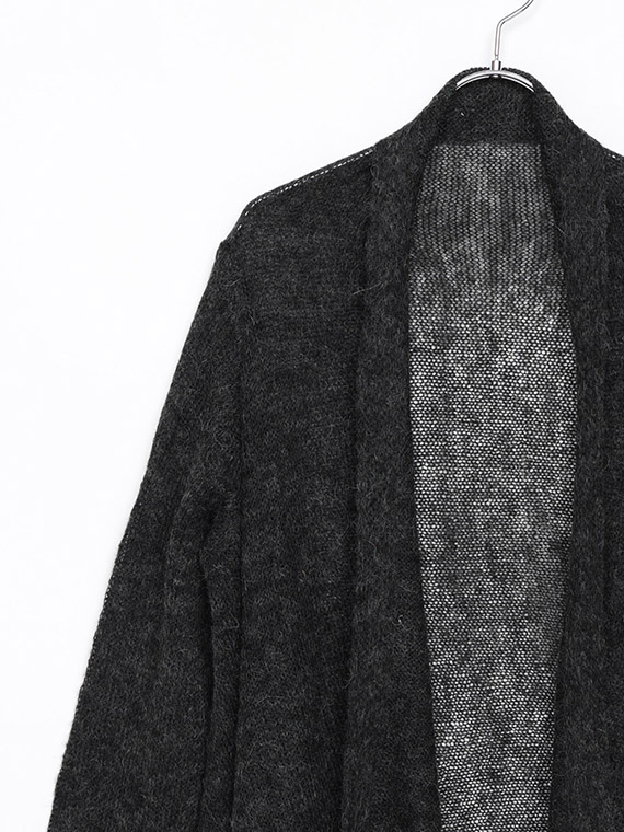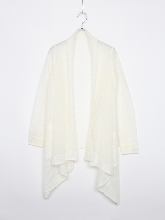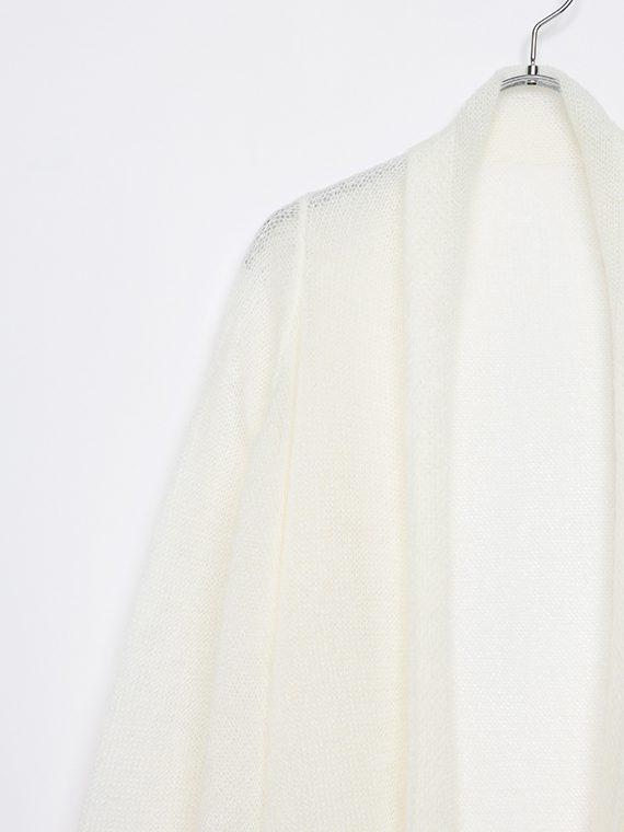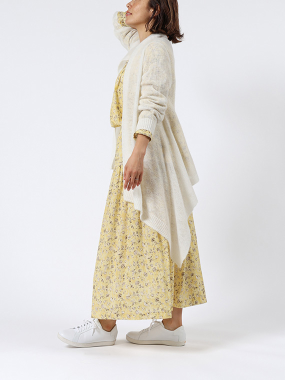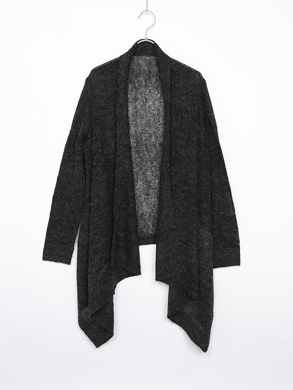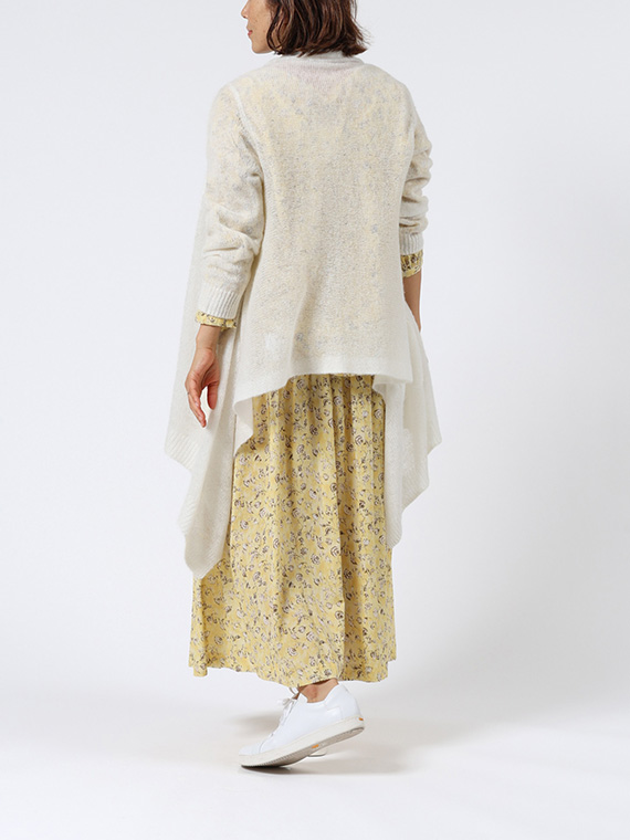 トッパーのように気軽に着流すだけで、コーディネートに動きと奥行きが生まれ、両脇が大きく垂れ下がるイレギュラーヘムは、歩くたび、風が吹くたびにドラマティックに揺らめきます。