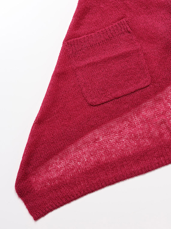 実際、甘く(ゆるく)編まれた天竺編みのストールのような長方形に、アームホールを開けて袖をつけた、非常にユニークで遊び心のある作りになっています。