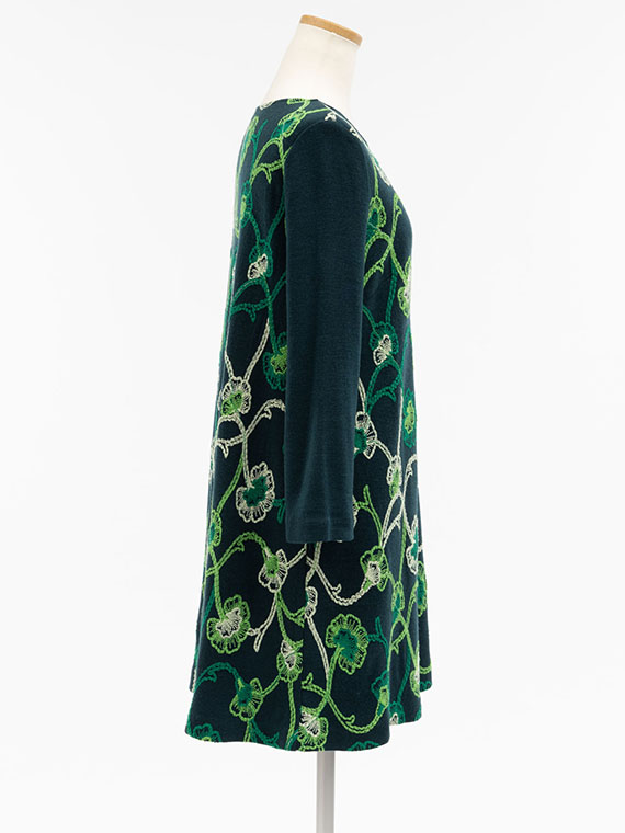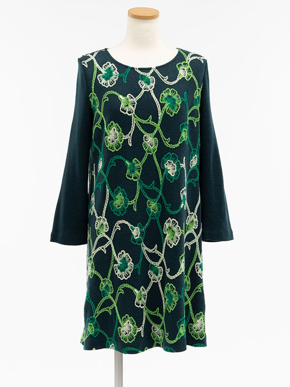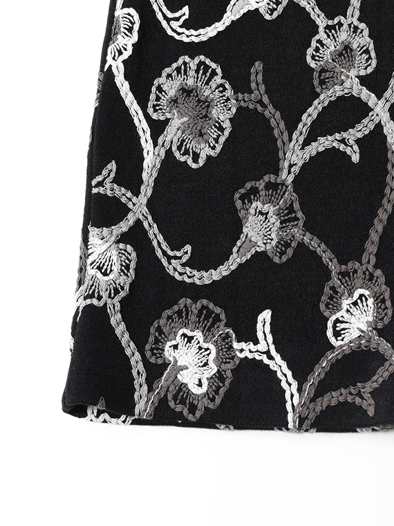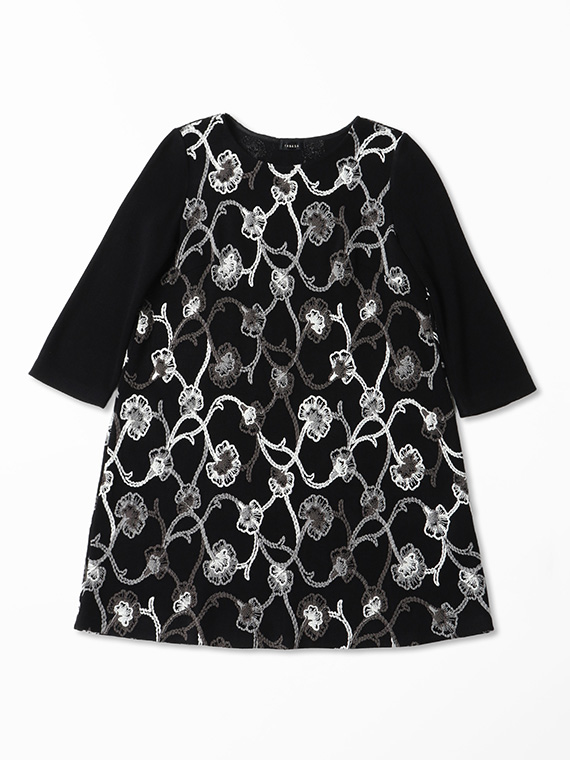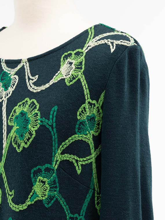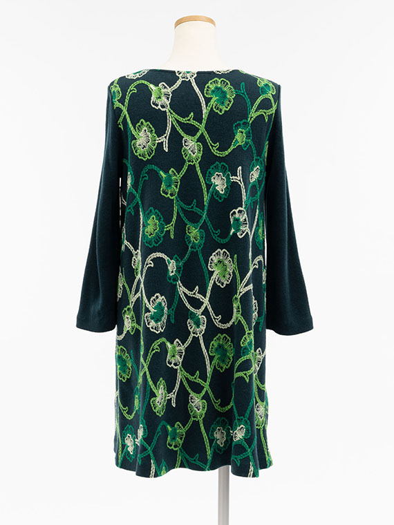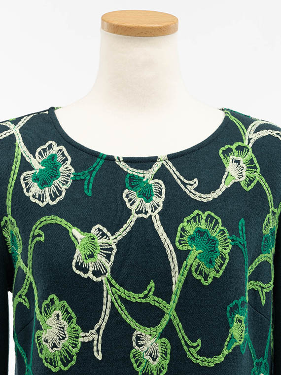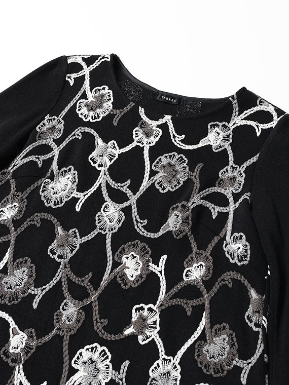 前後身頃に大胆に施されたフラワー刺繍が目を惹くAラインシルエットのチュニックです。