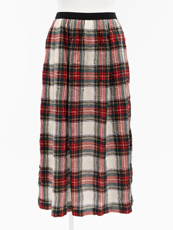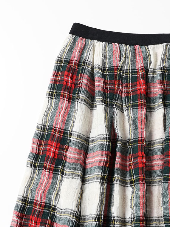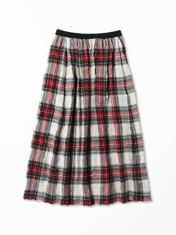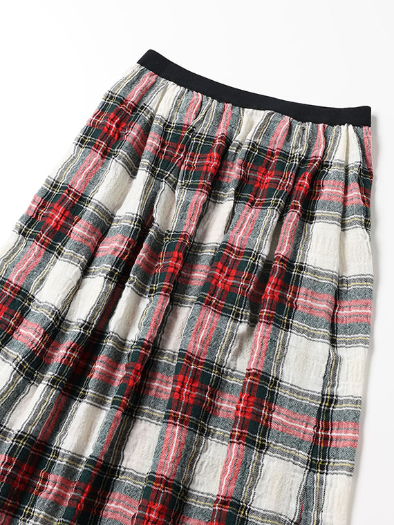 伝統的なタータンチェック柄を、大人の女性がラフで軽やかに楽しめるように仕立てたスカートです。
