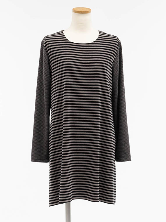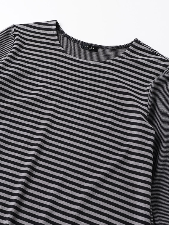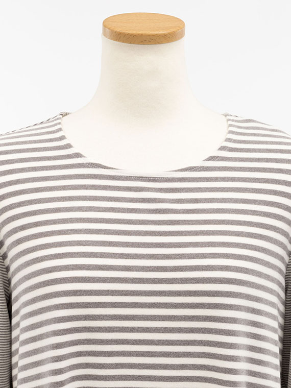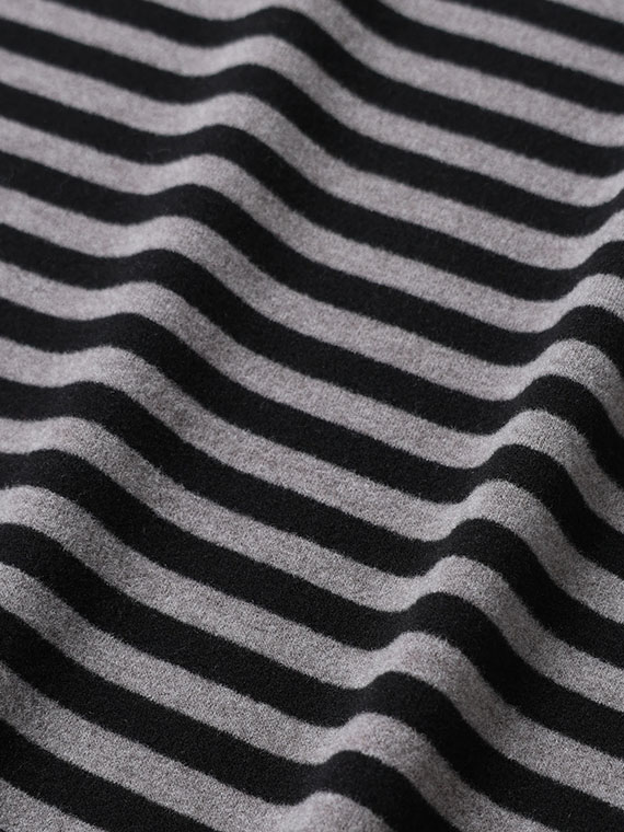 ふんわりと起毛感があり、見た目にも手ざわりにも暖かさが伝わる上質なボーダー柄のベア天竺です。