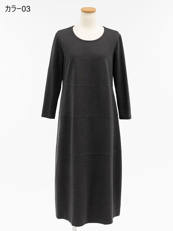 無地のシンプルさを活かしてストールやネックレスなどの小物を合わせれば、華やかな雰囲気が演出でき、一枚でサマになる優秀なアイテムです。