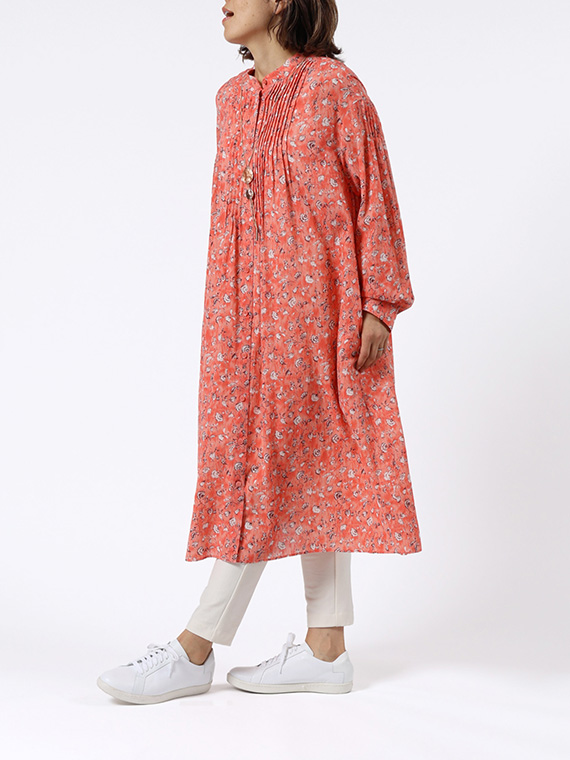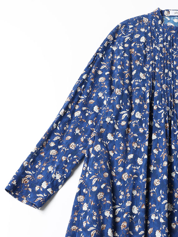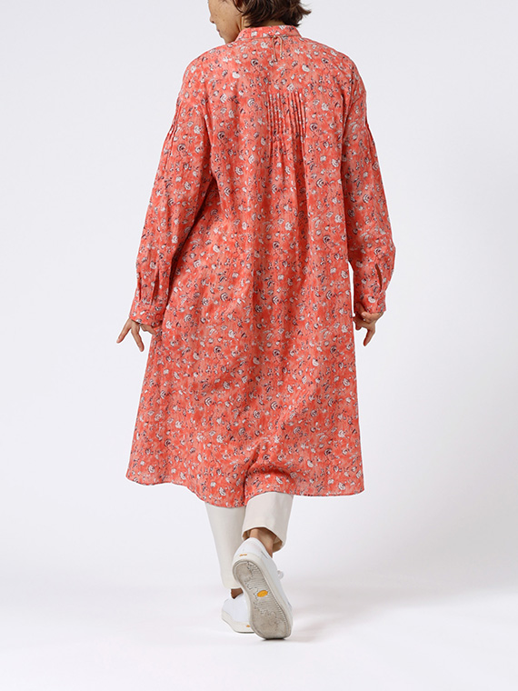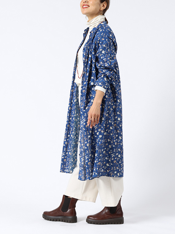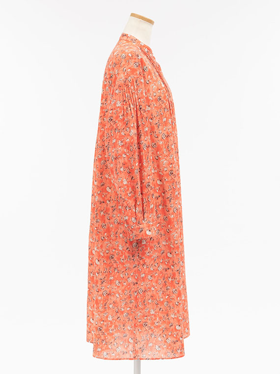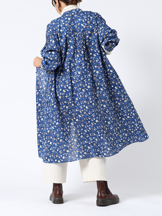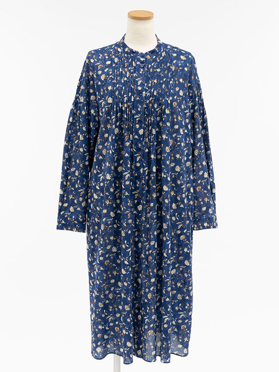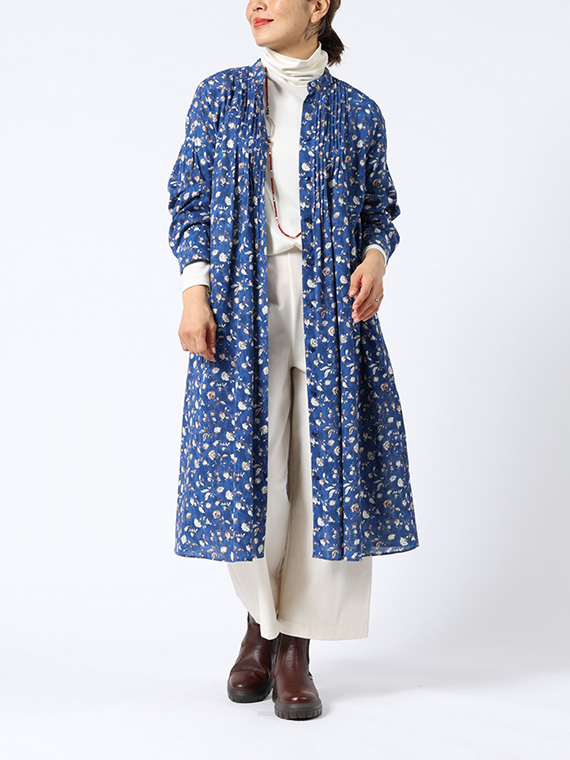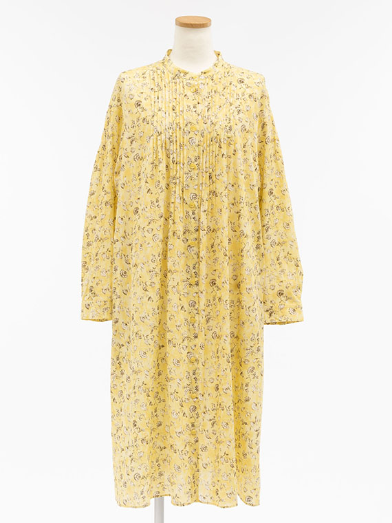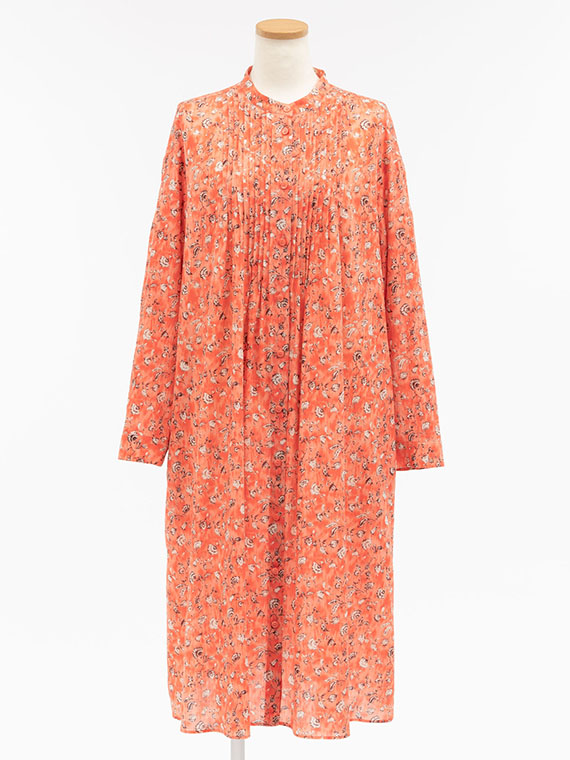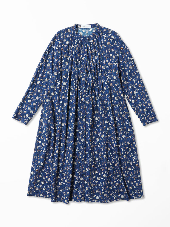 たくさんのピンタックを贅沢にあしらった、ふんわりと優雅なシルエットが目を引く前開きのワンピースです。