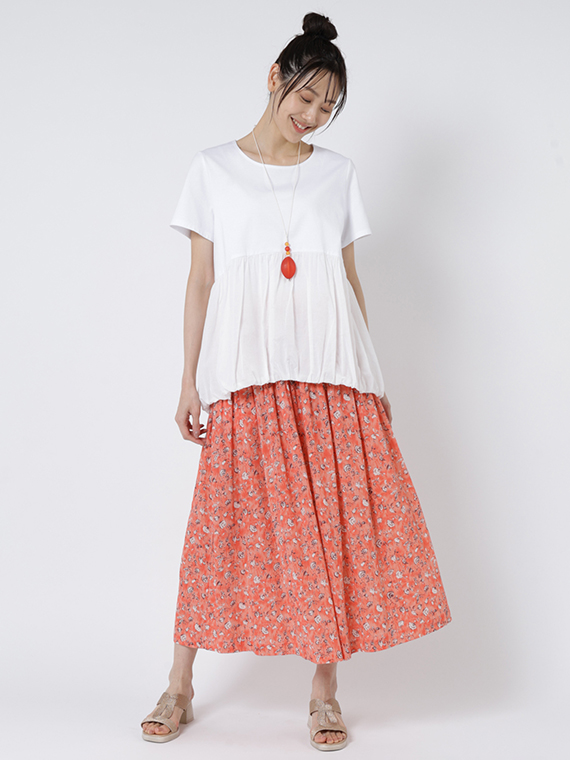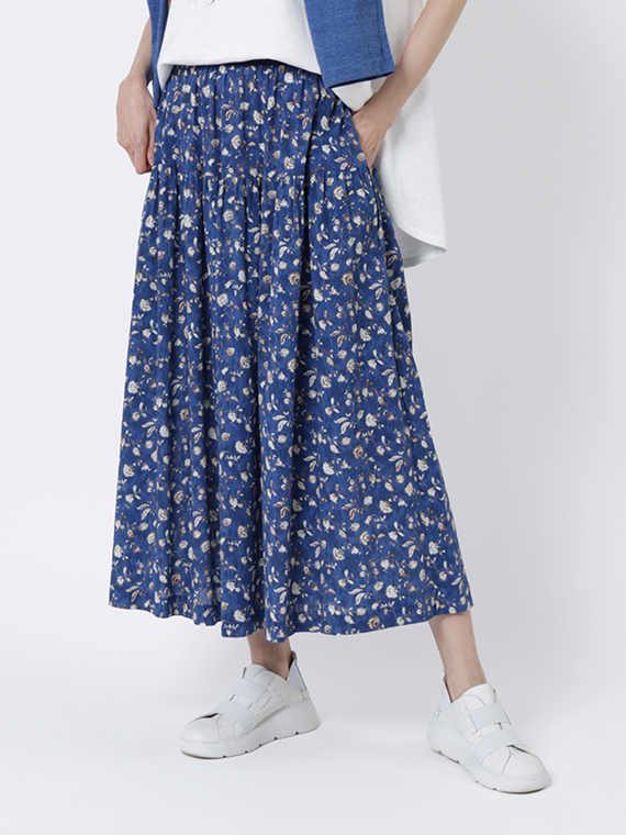 ティアードデザインの持つ楽しさと、楊柳素材の軽やかさが美しく融合した、主役級のギャザースカートです。